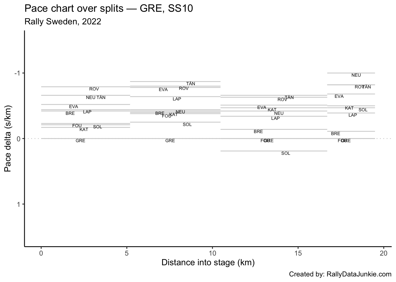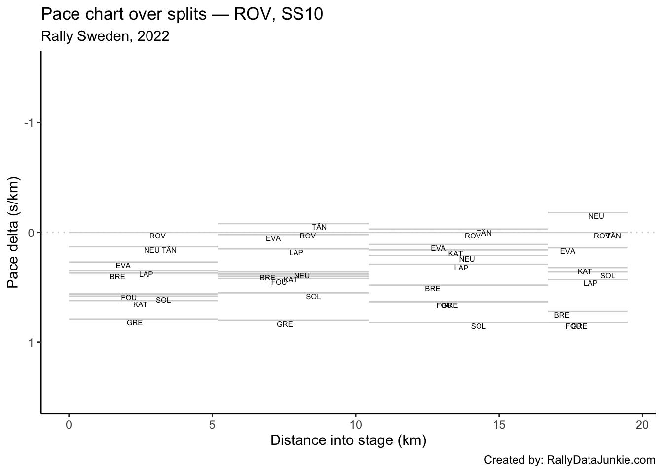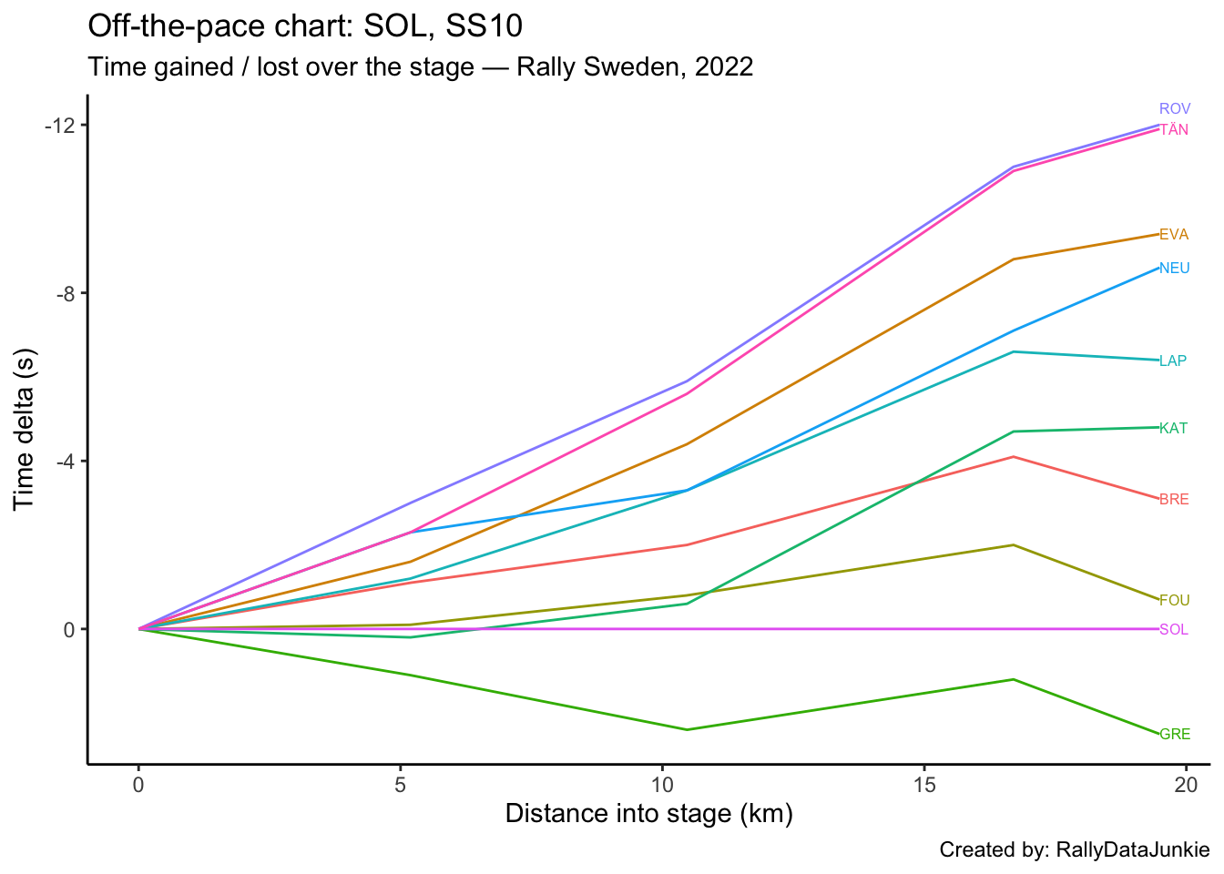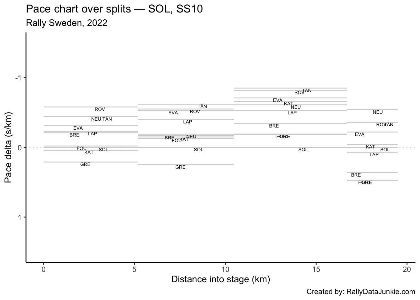 SOL’s delta in time to complete each split section compared to other drivers: