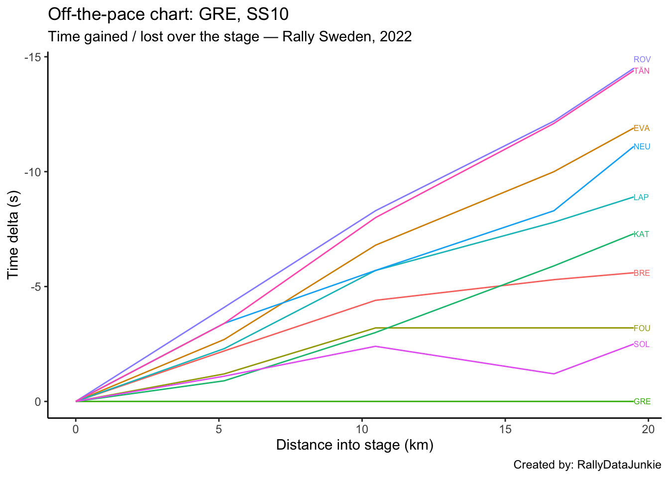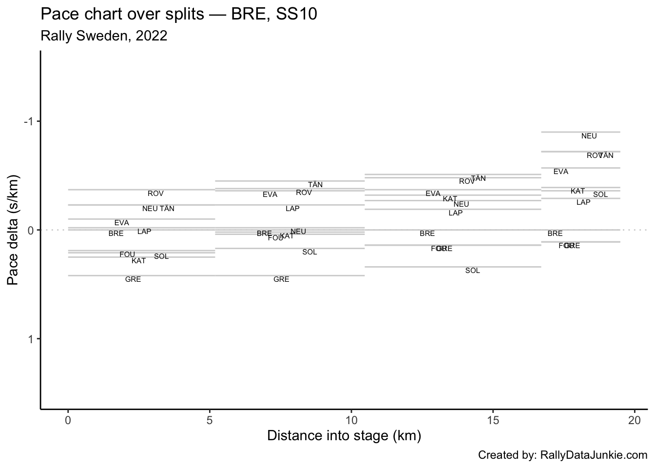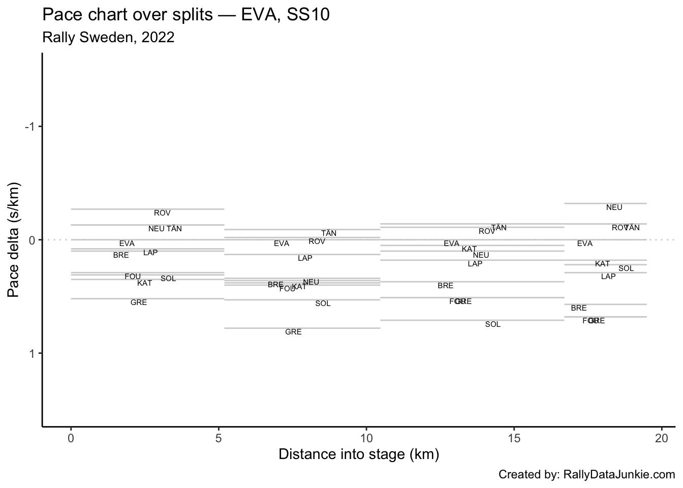 SOL’s delta in time to complete each split section compared to other drivers: