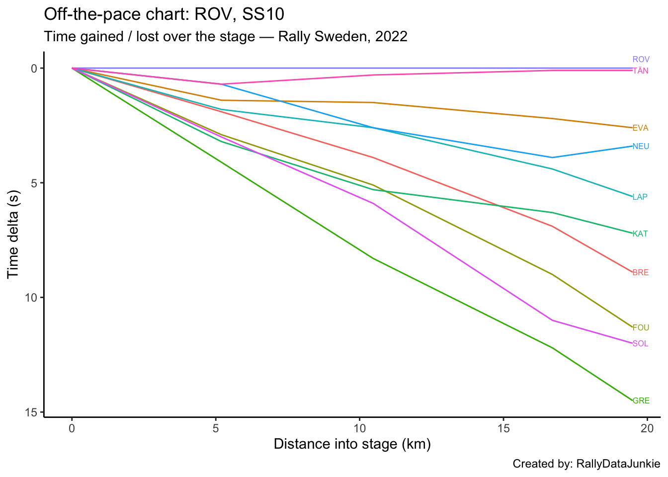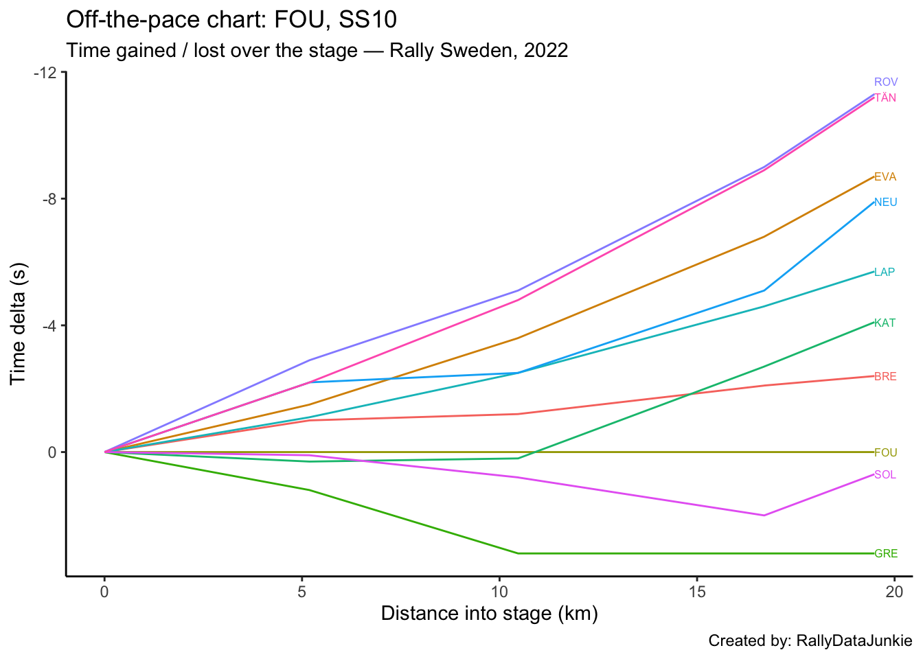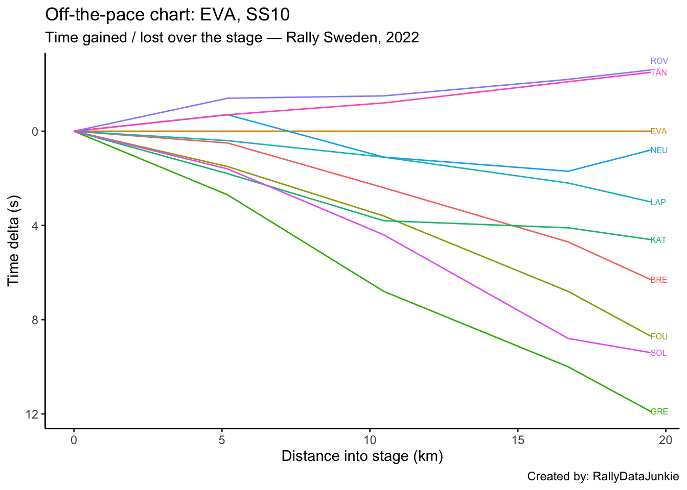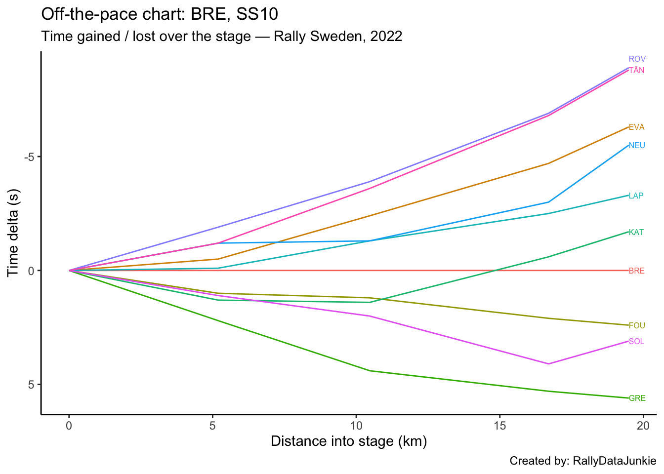 SOL’s delta in time to complete each split section compared to other drivers: