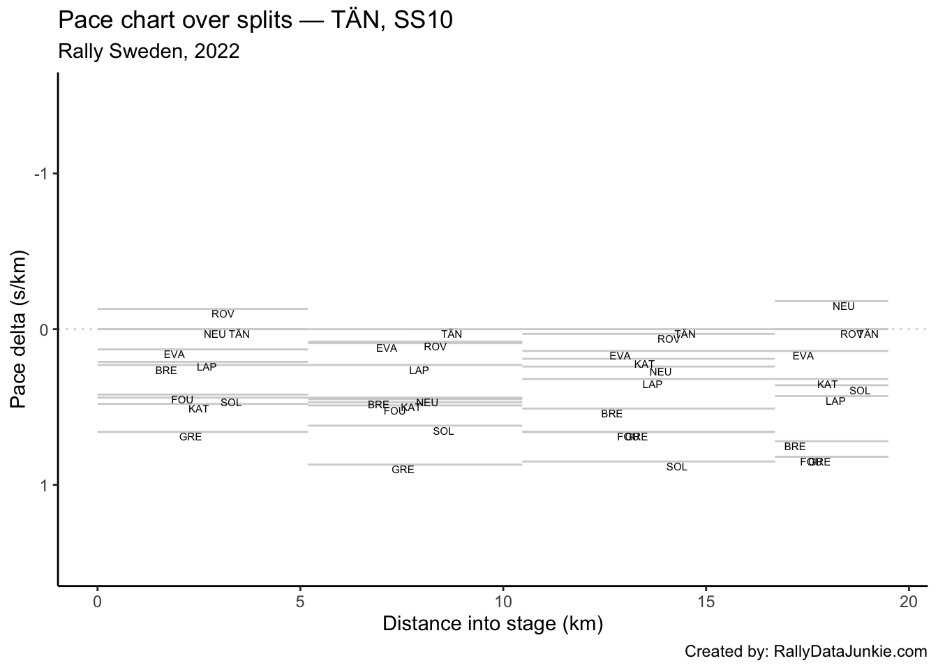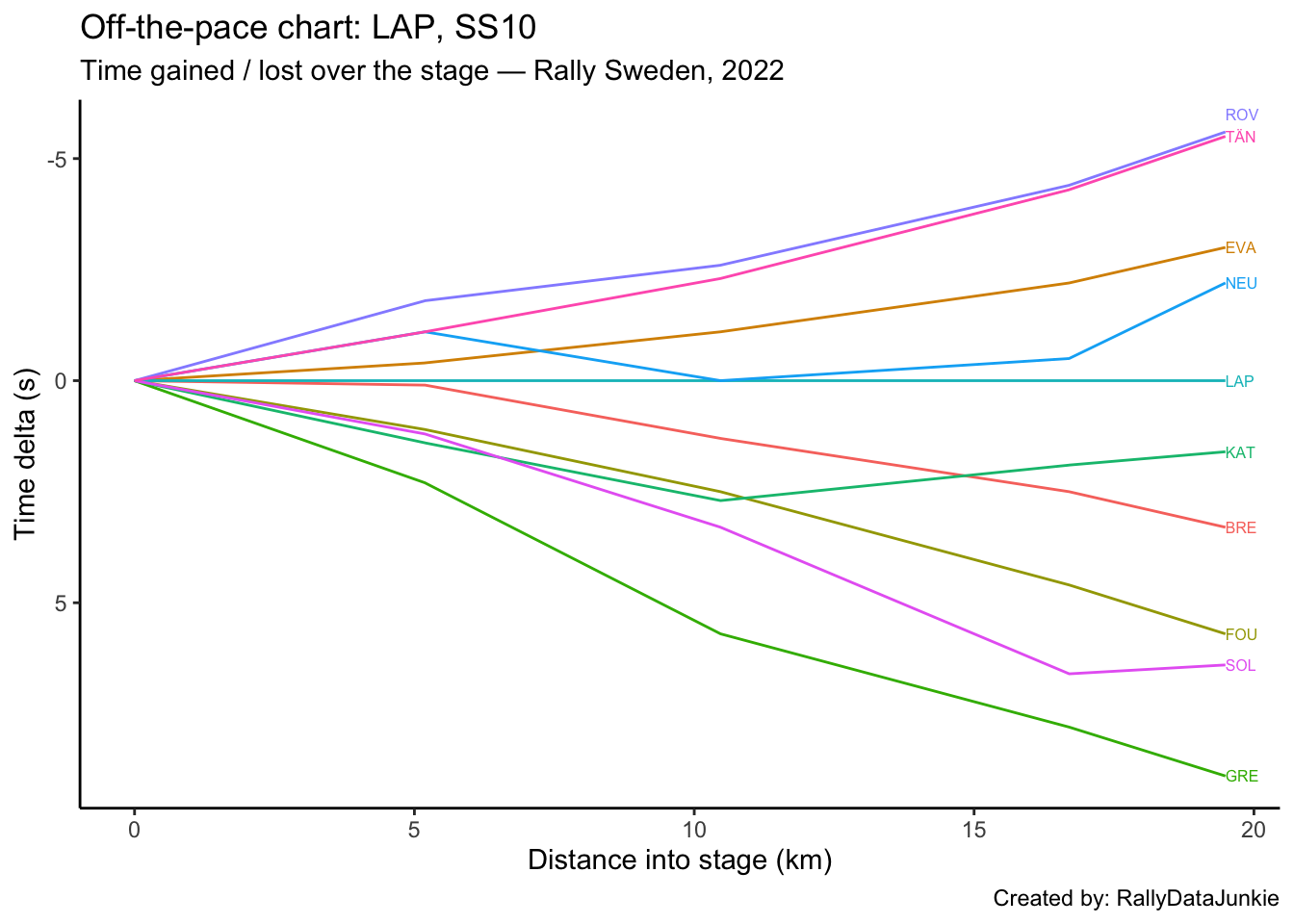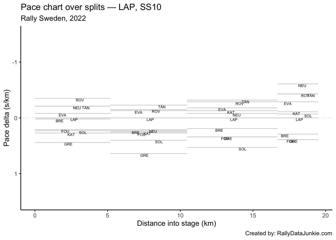 LAP’s delta at each split compared to other drivers.