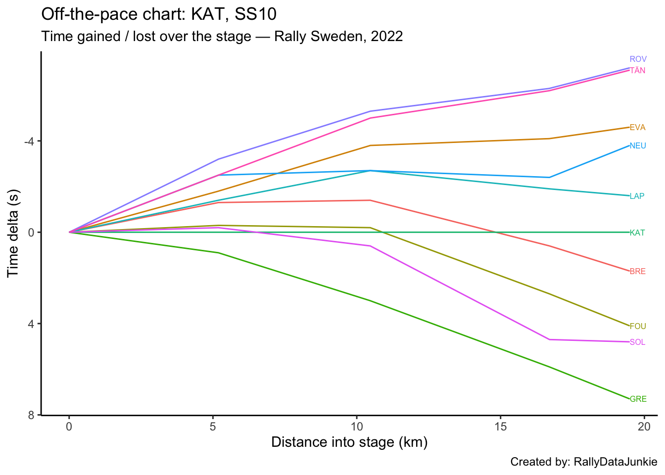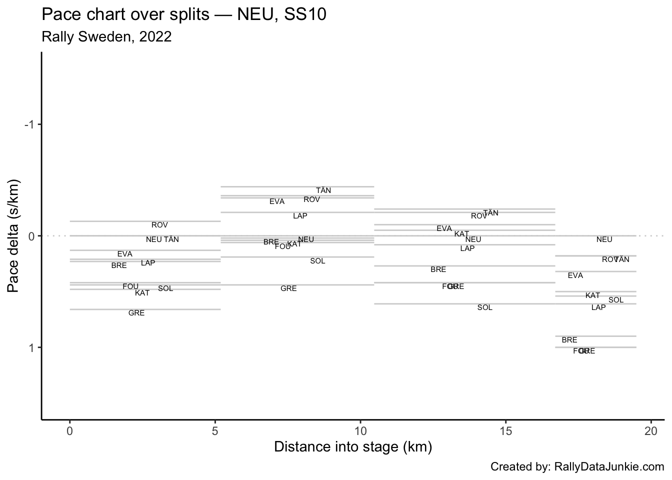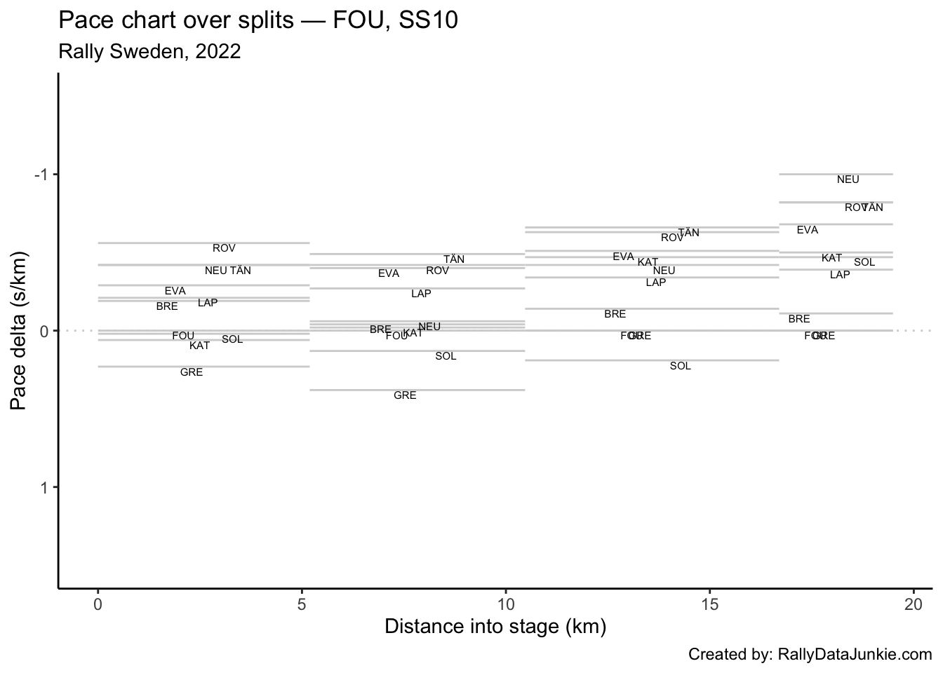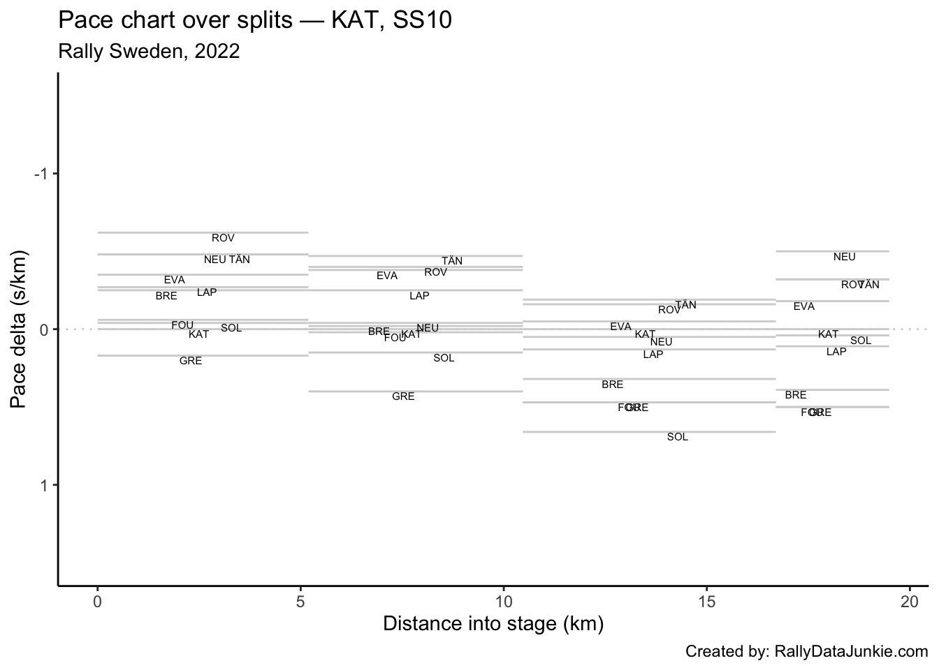 LAP’s delta at each split compared to other drivers.