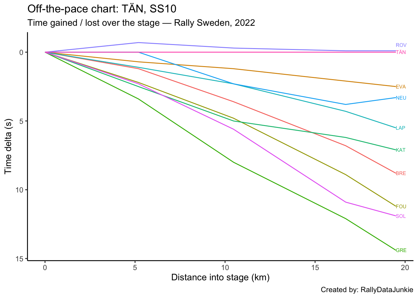 - accumulated ultimate sections times: gives and estimate of how quickly the driver is going relative to the fastest possible completion of the stage based on accumulated ultimate split section times.