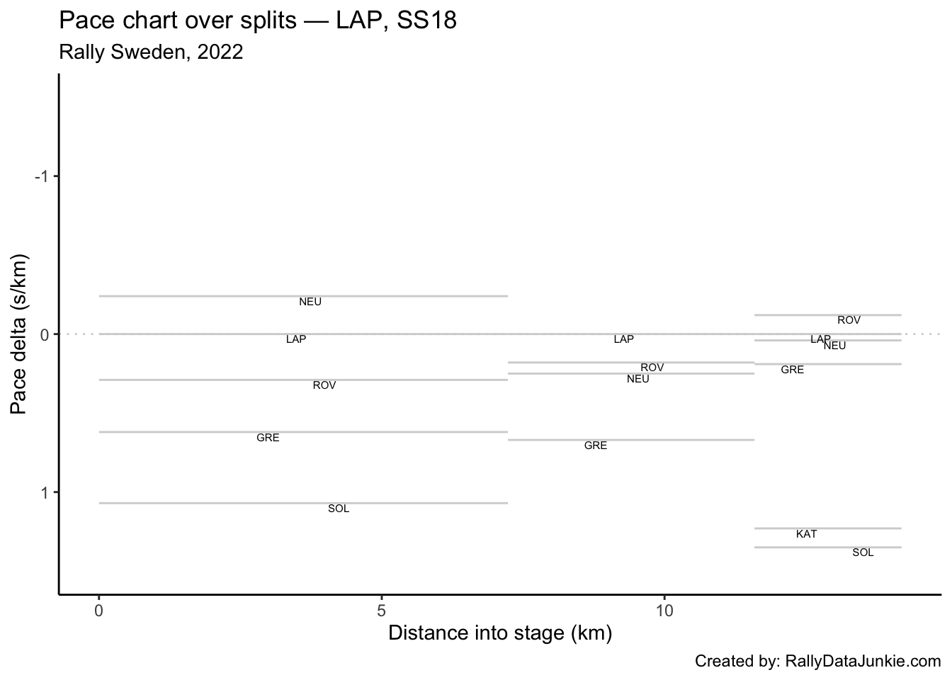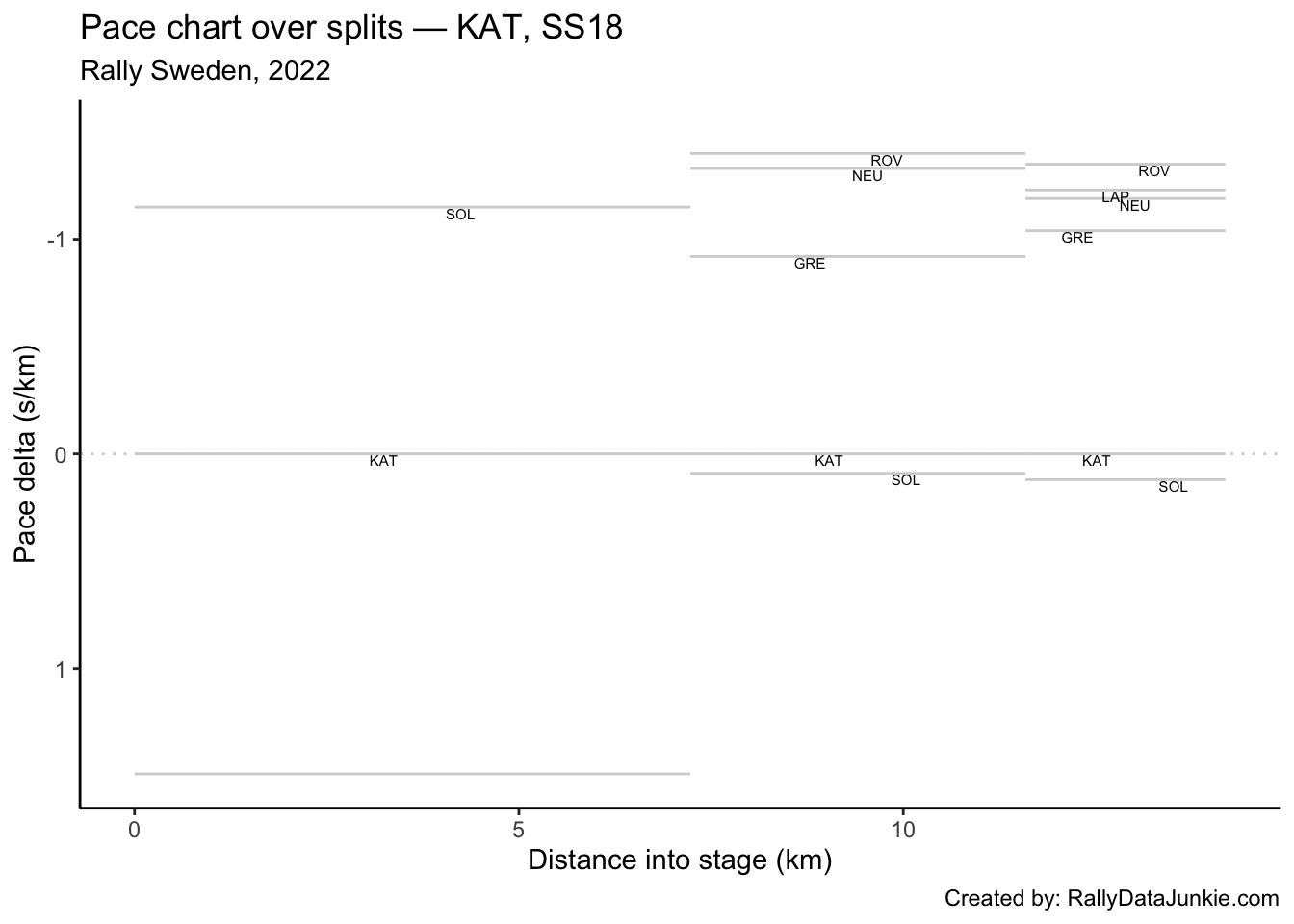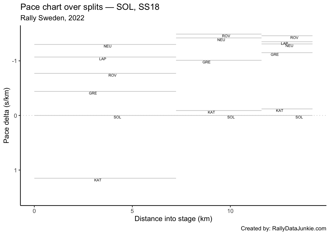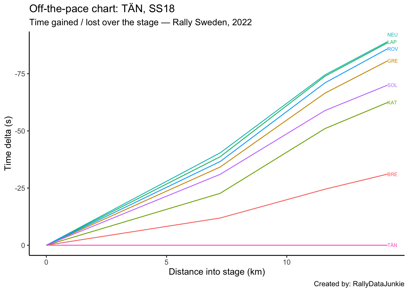 TÄN’s delta in time to complete each split section compared to other drivers: