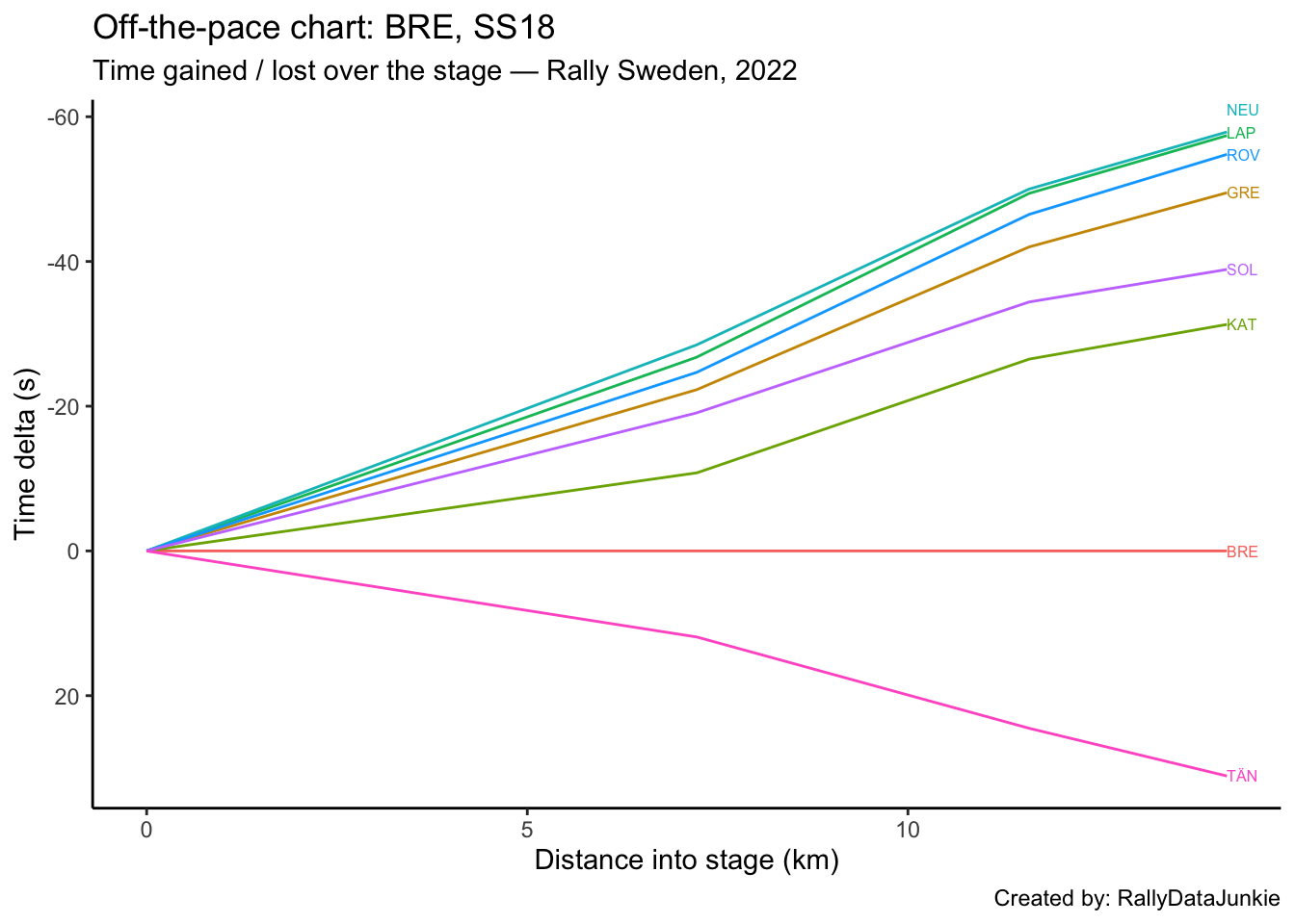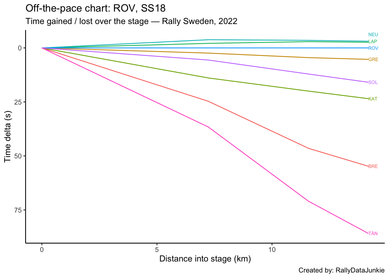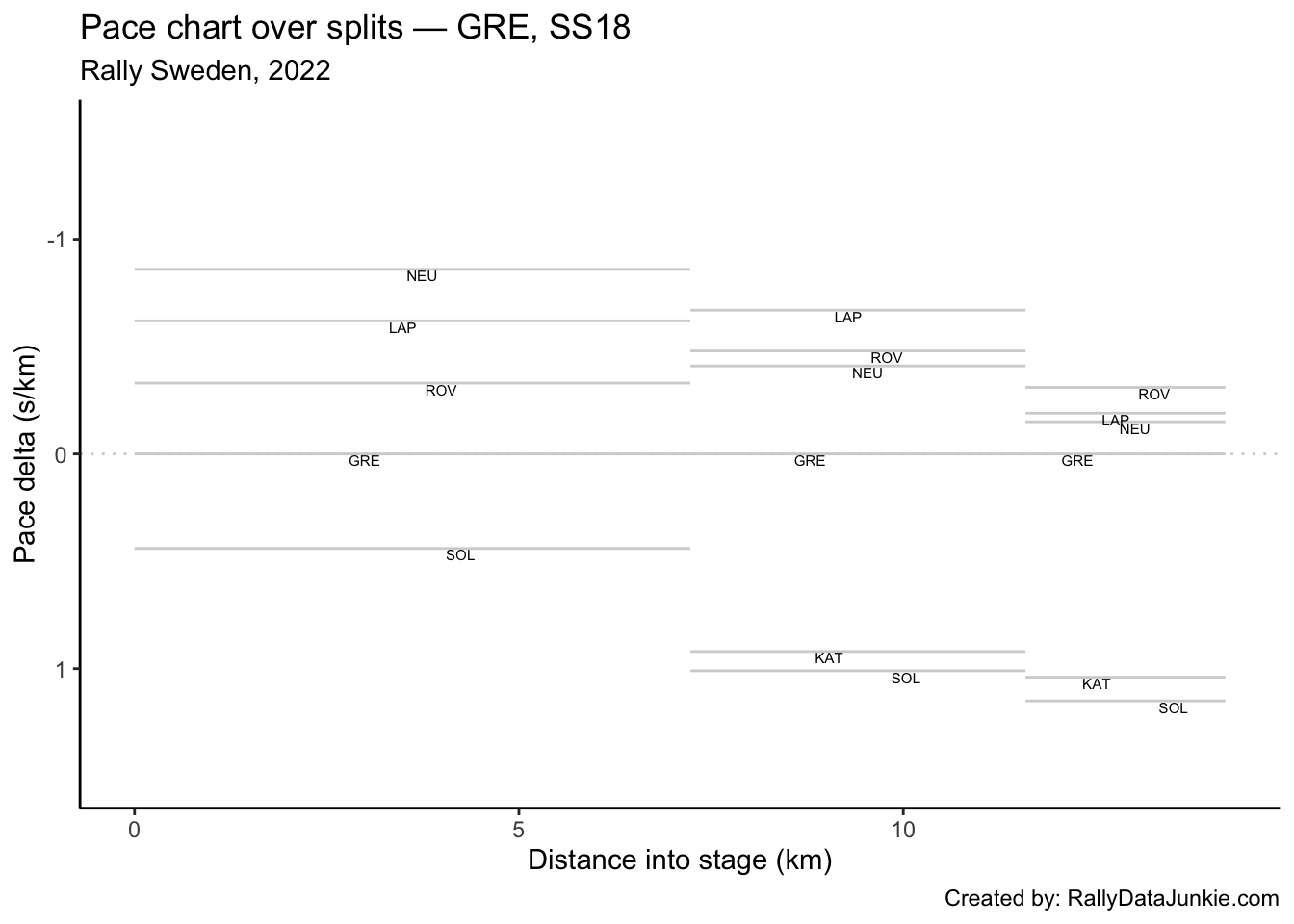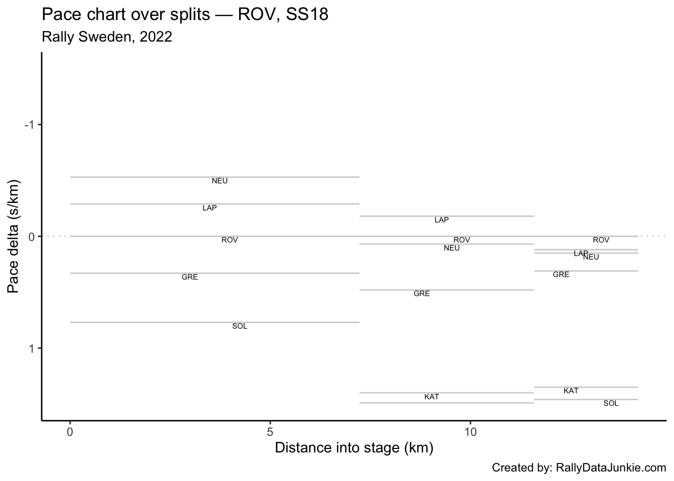 TÄN’s delta in time to complete each split section compared to other drivers:
