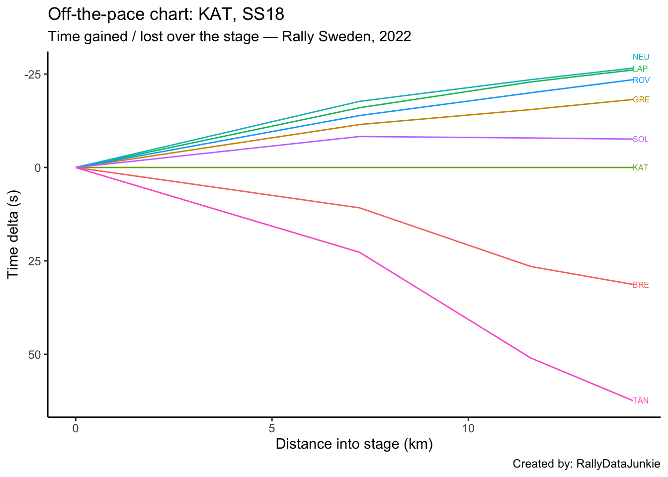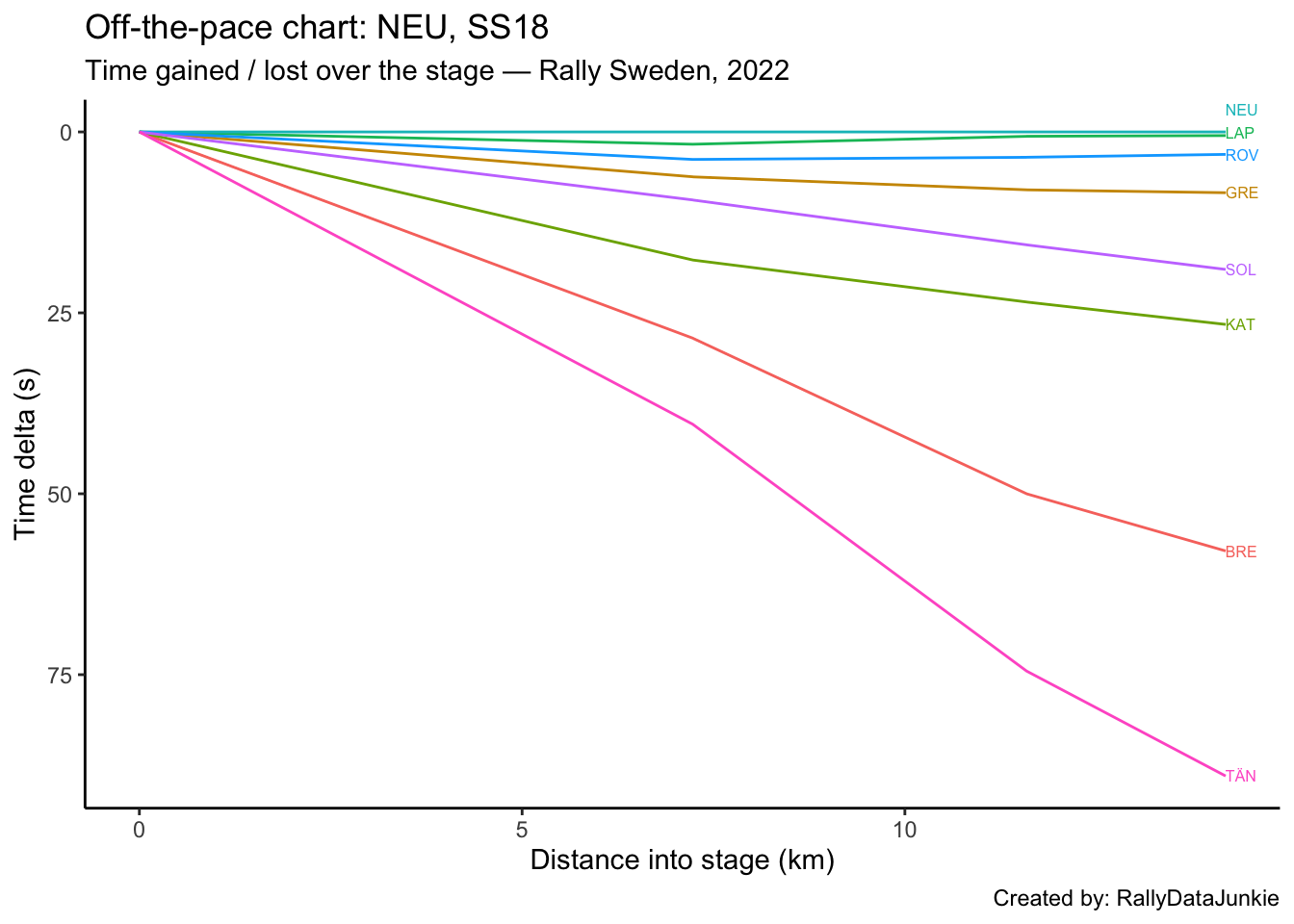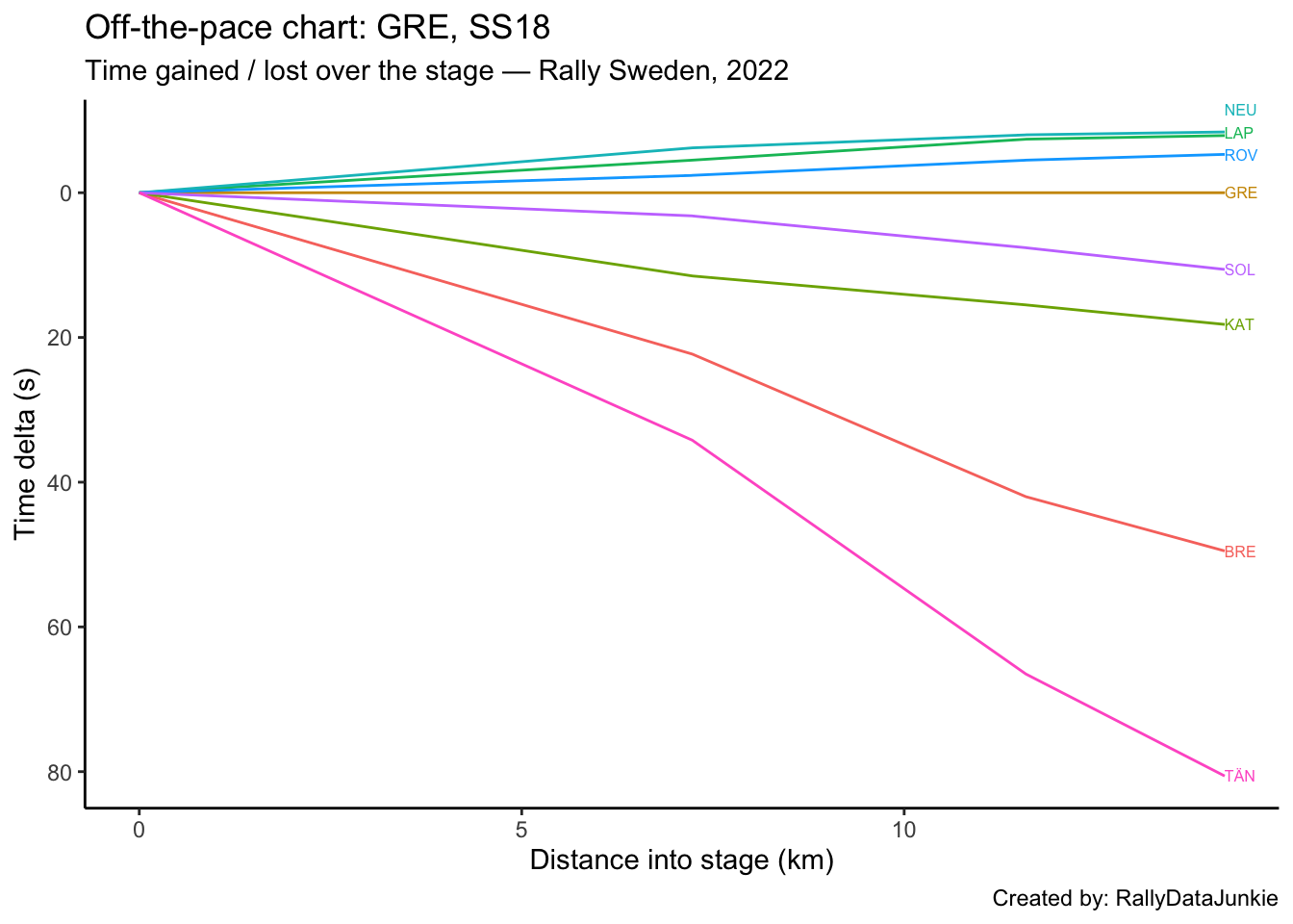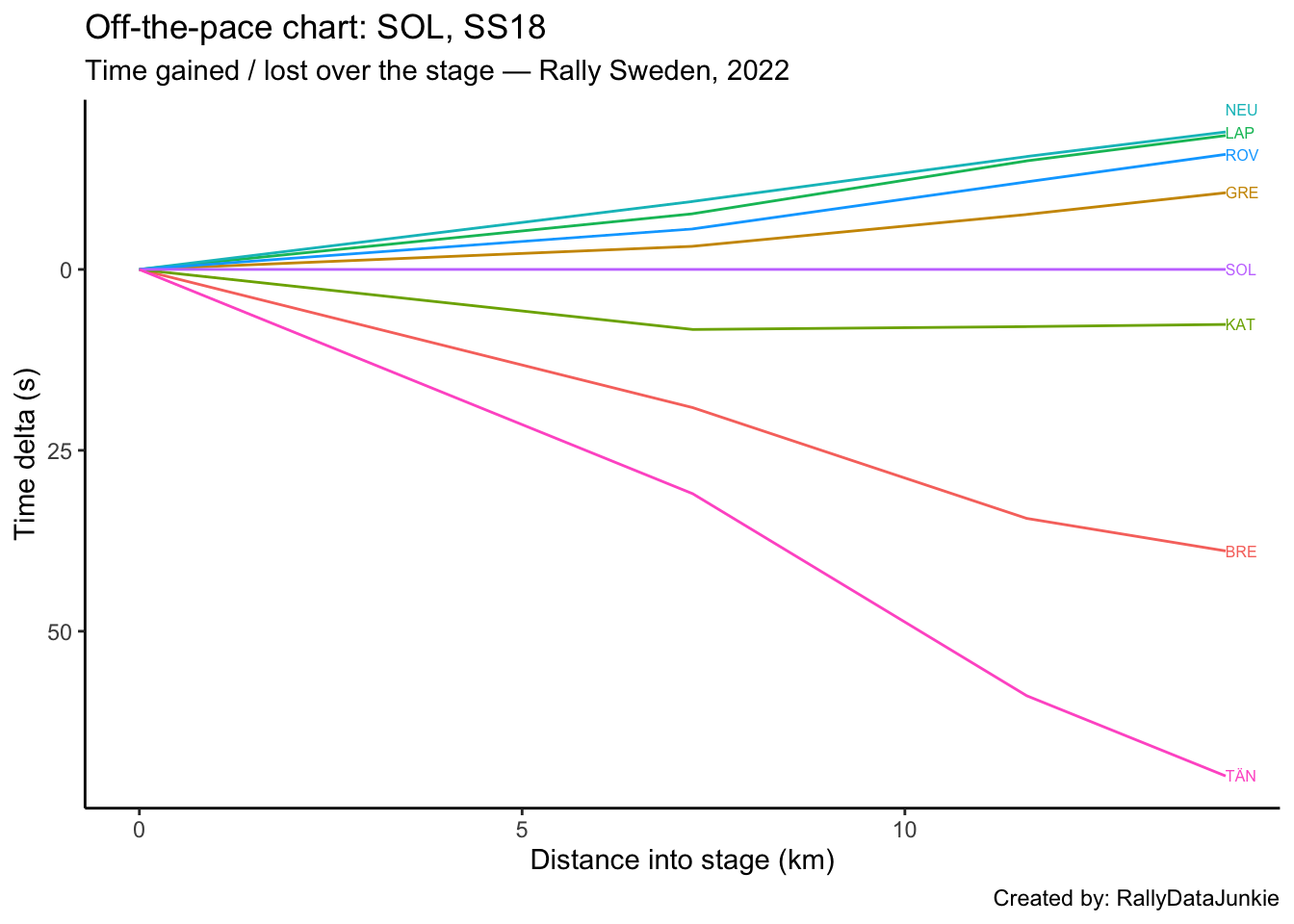 TÄN’s delta in time to complete each split section compared to other drivers: