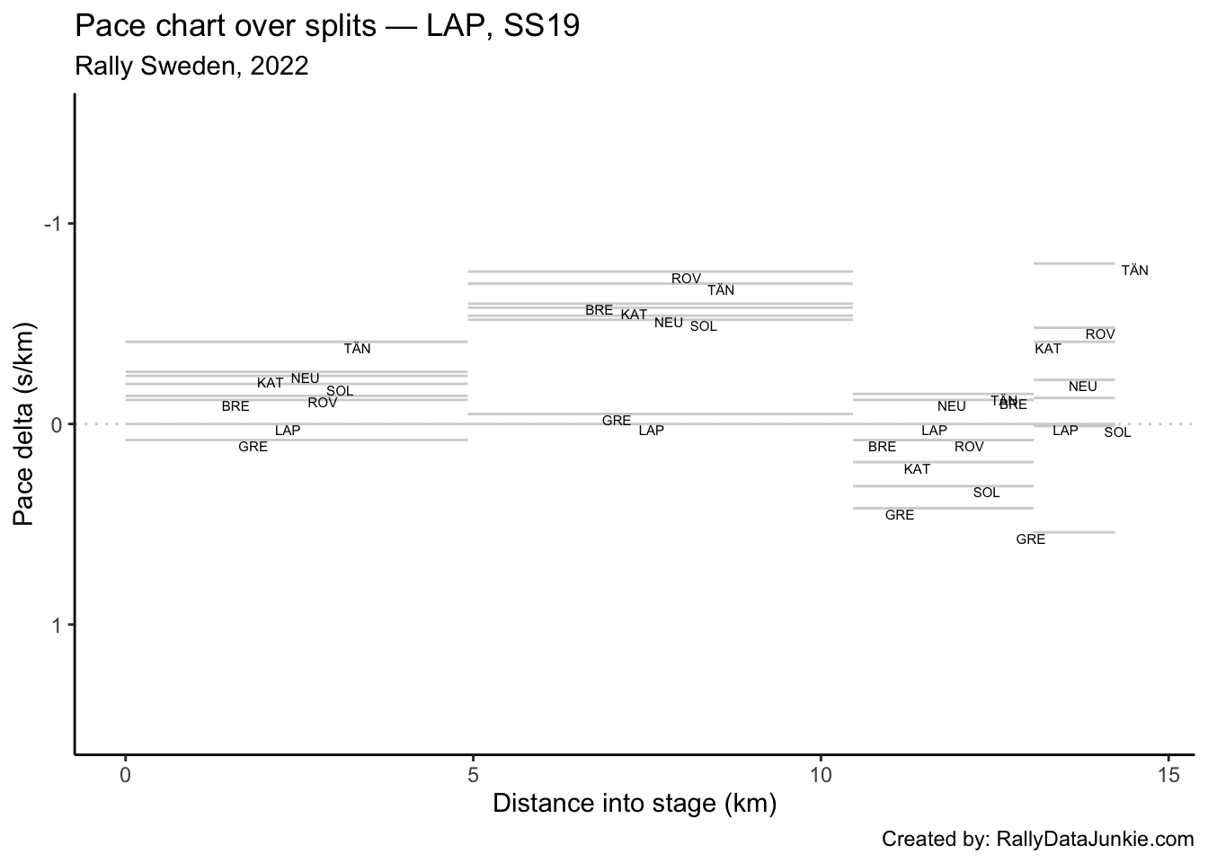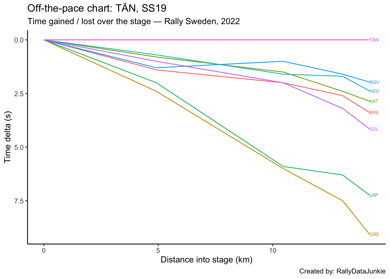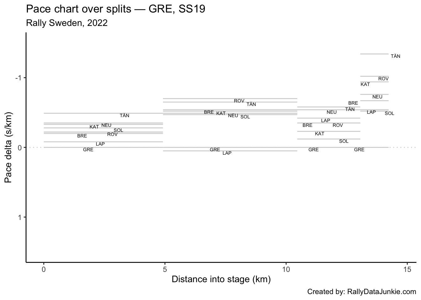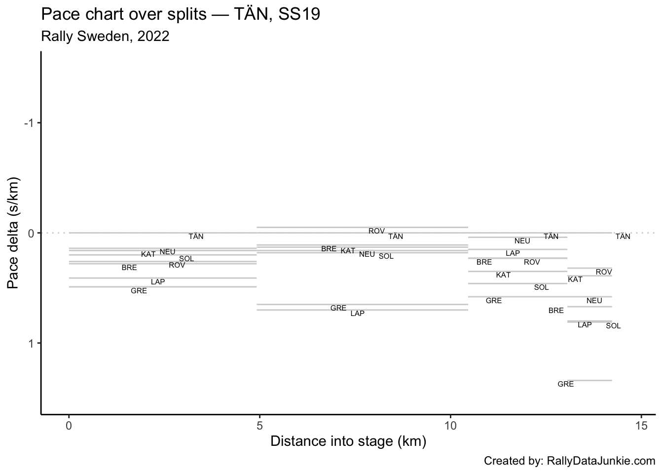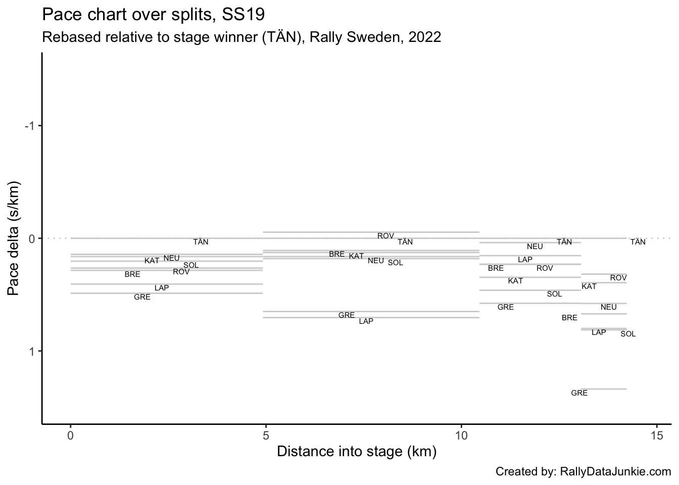 TÄN’s delta in time to complete each split section compared to other drivers: