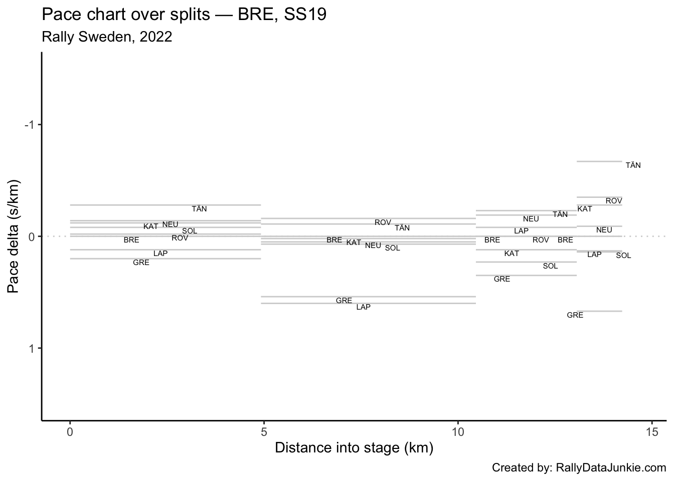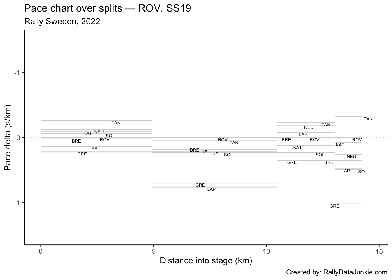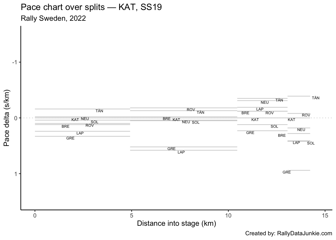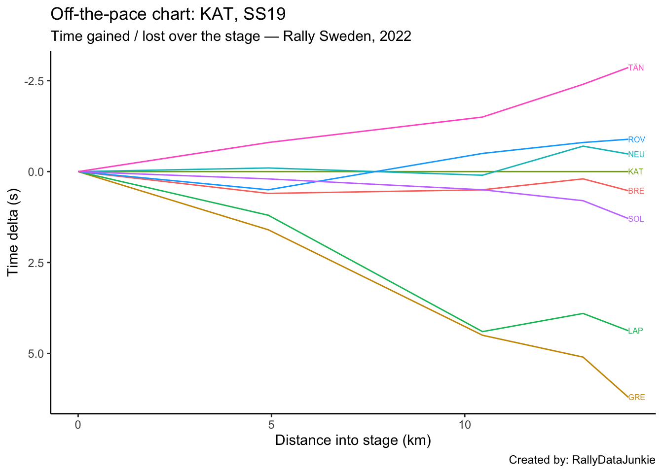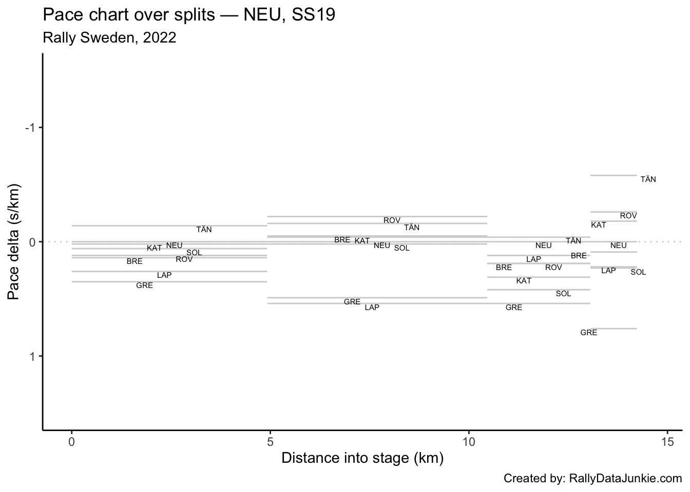 TÄN’s delta in time to complete each split section compared to other drivers: