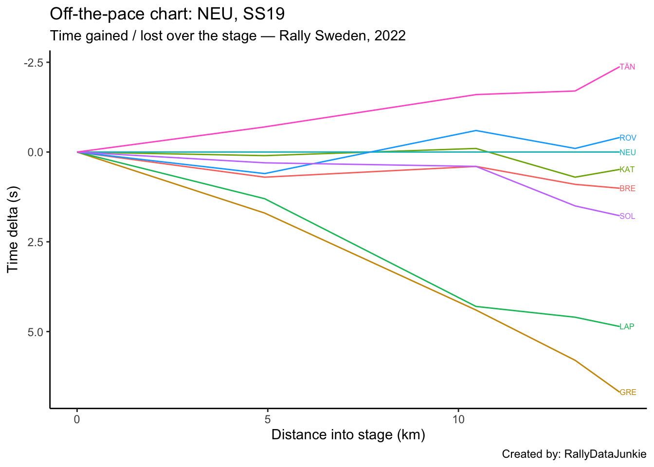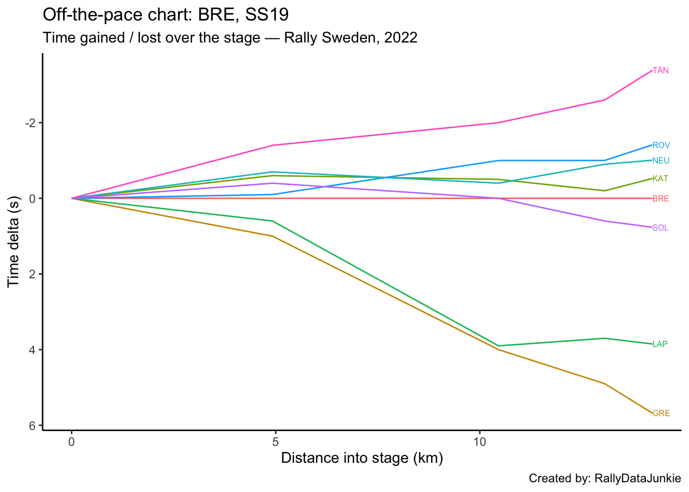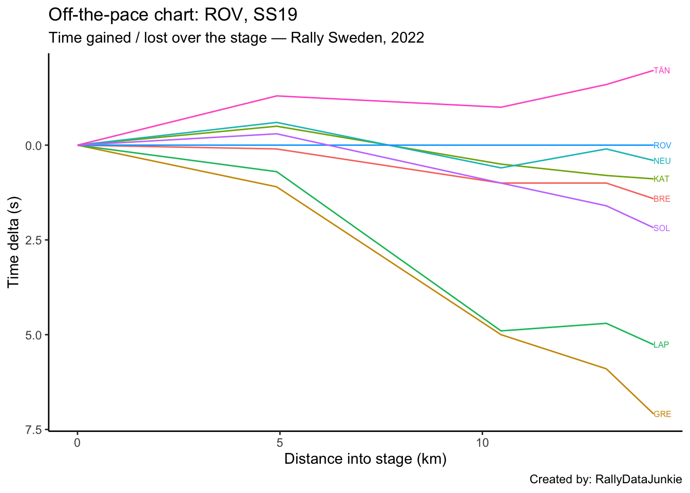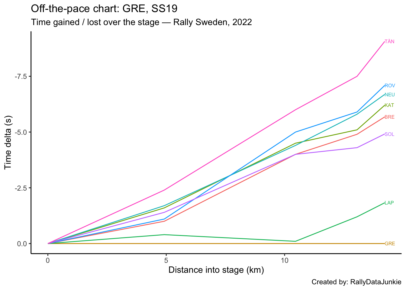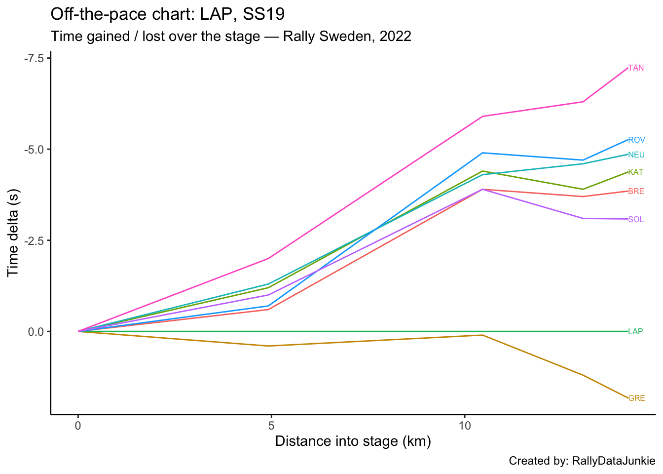 TÄN’s delta in time to complete each split section compared to other drivers: