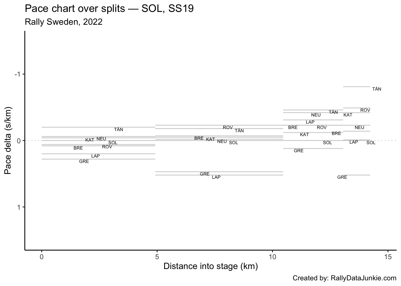 SOL’s delta at each split compared to other drivers.