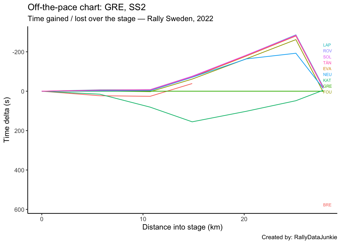 - accumulated ultimate sections times: gives and estimate of how quickly the driver is going relative to the fastest possible completion of the stage based on accumulated ultimate split section times.