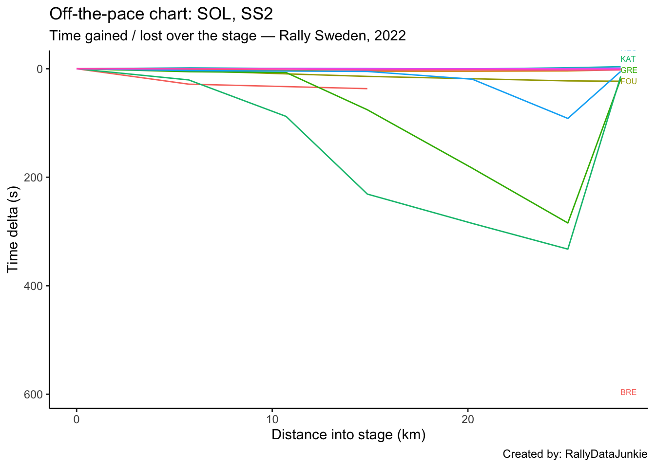 SOL’s delta in time to complete each split section compared to other drivers: