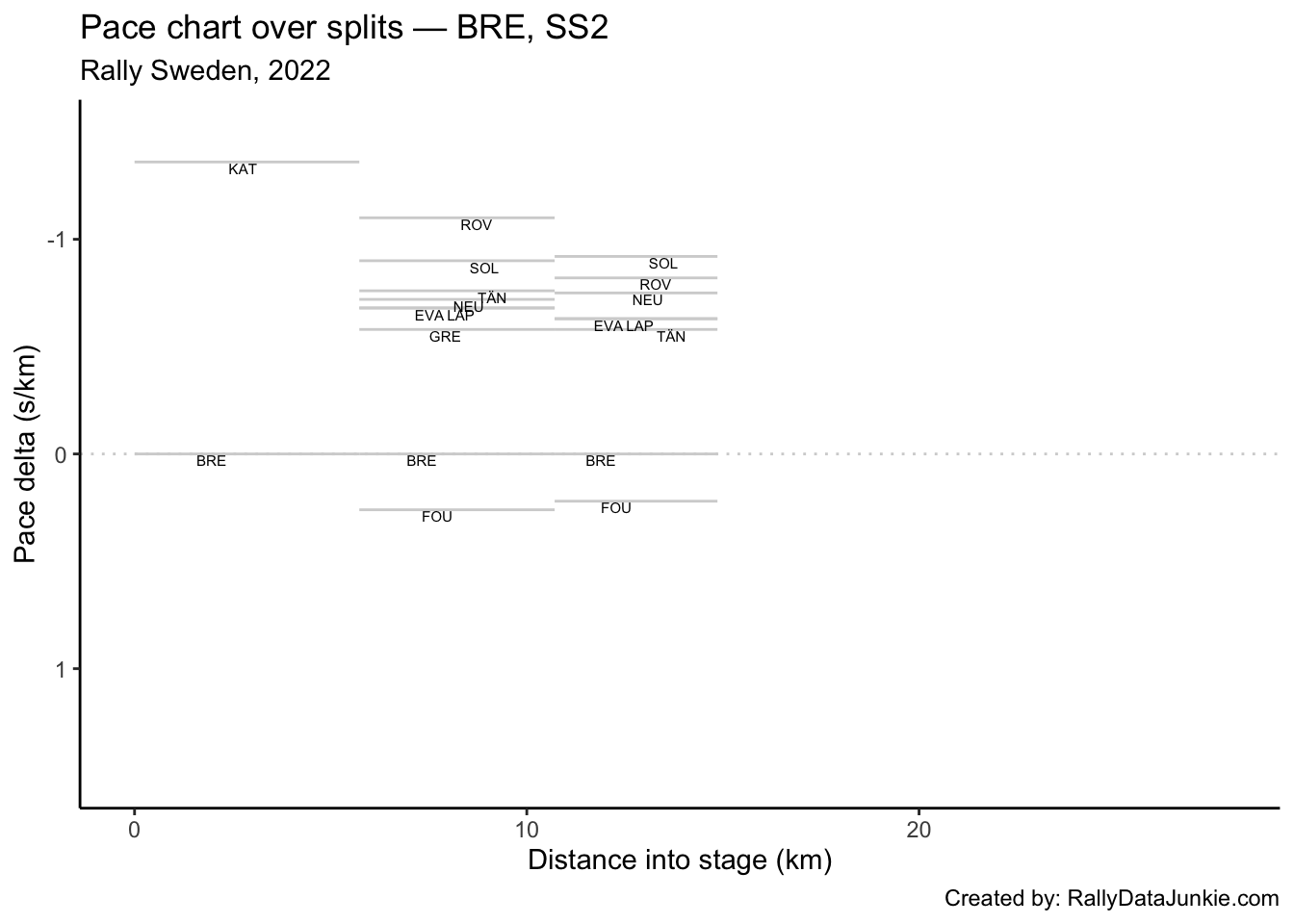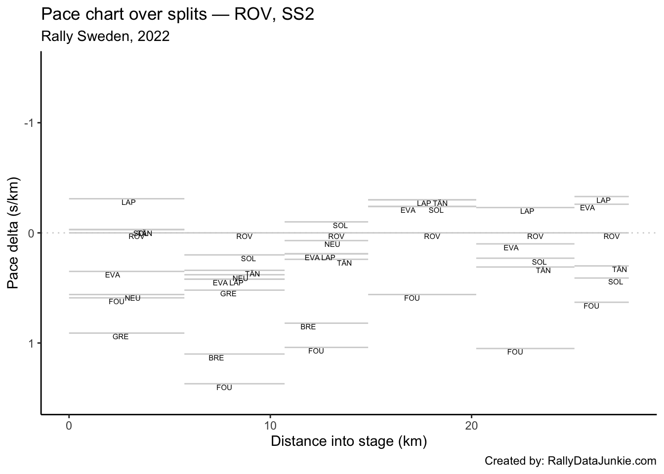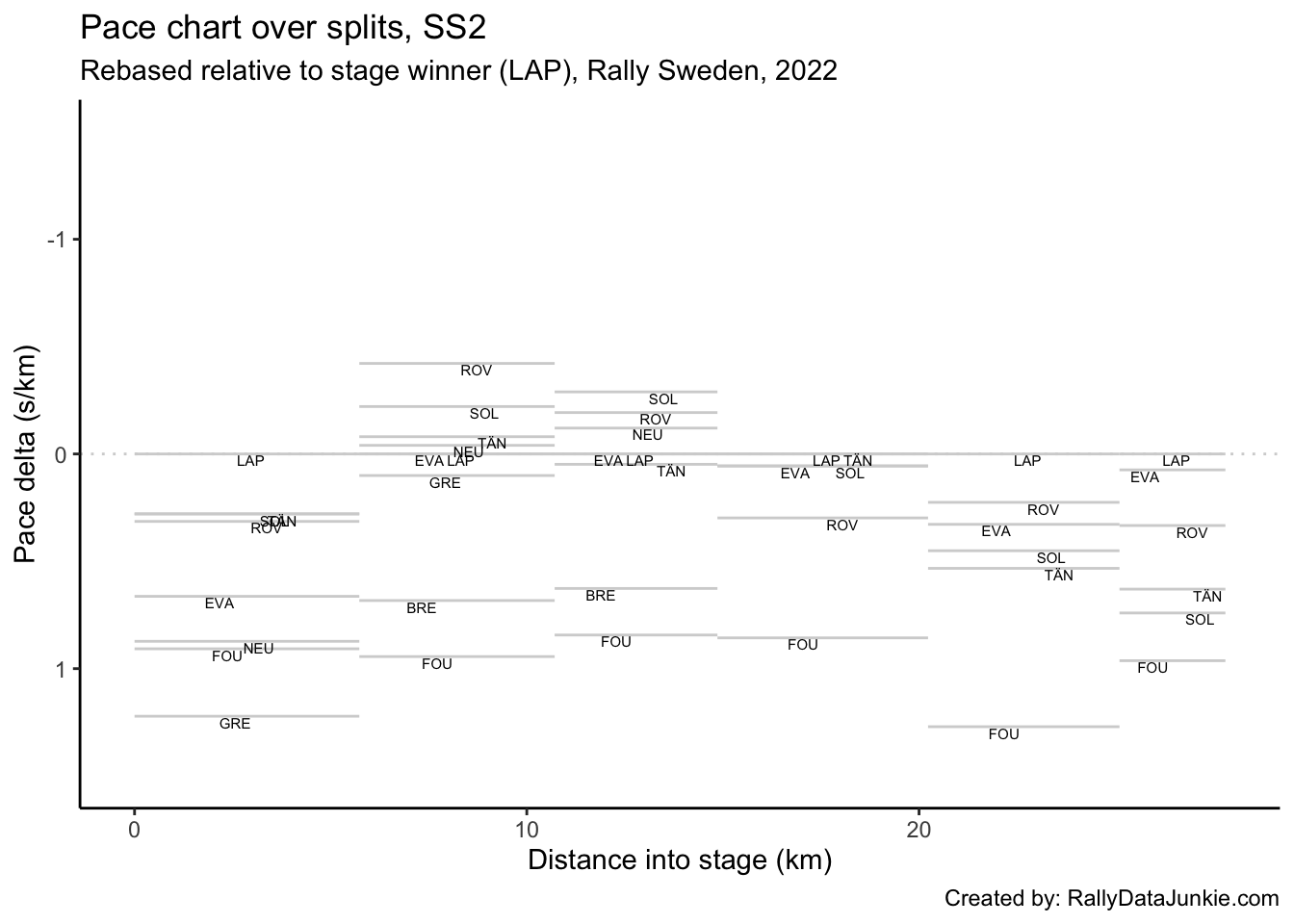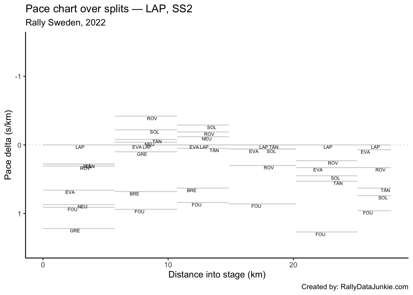 LAP’s delta at each split compared to other drivers.