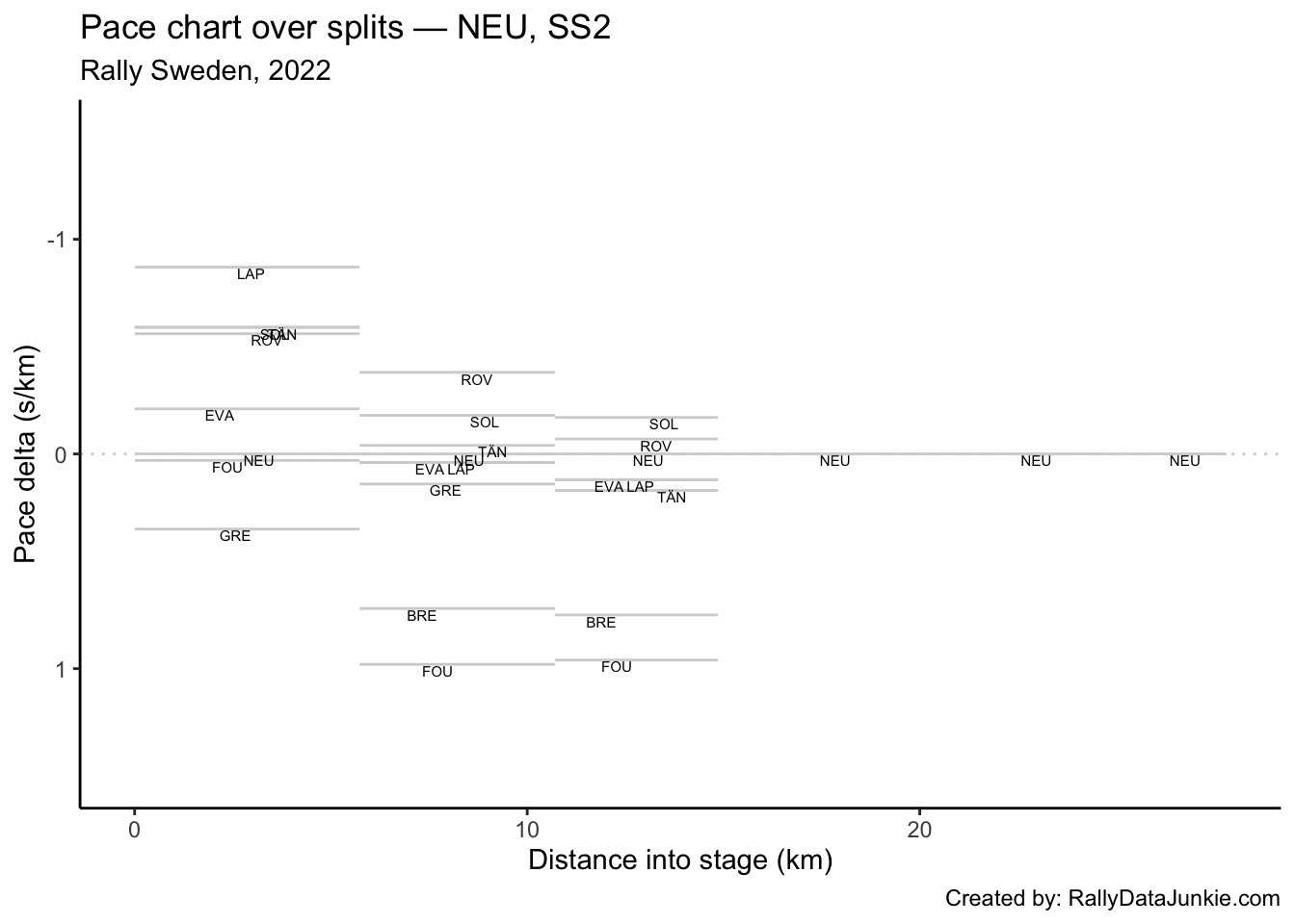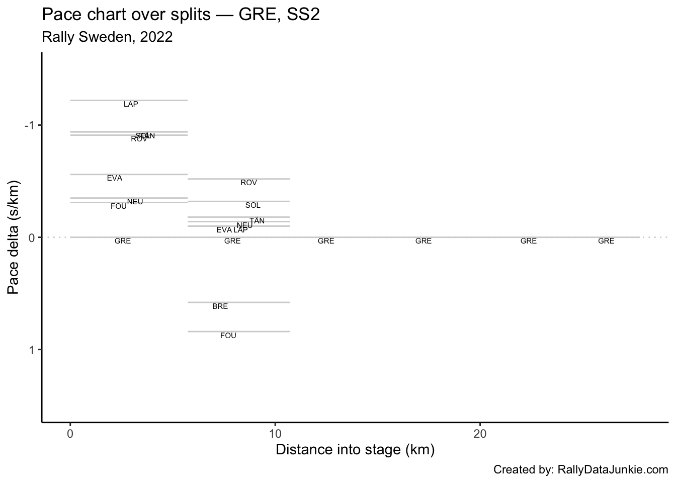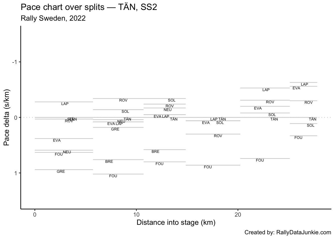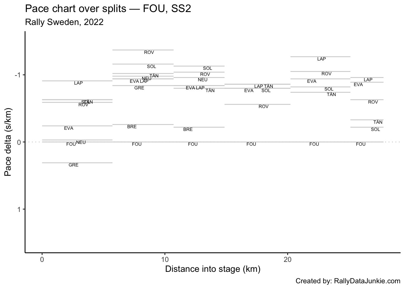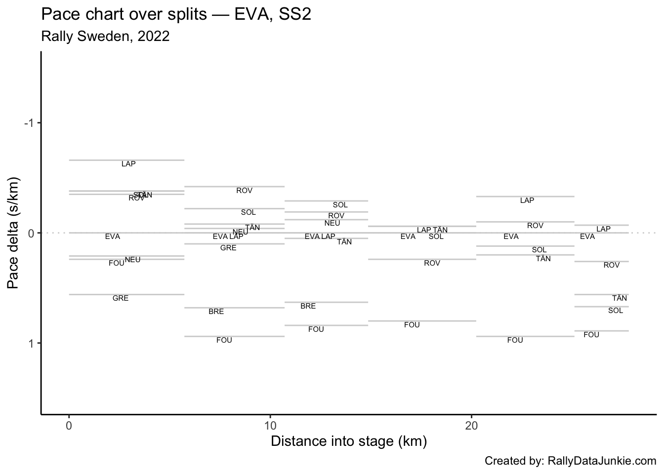 LAP’s delta at each split compared to other drivers.