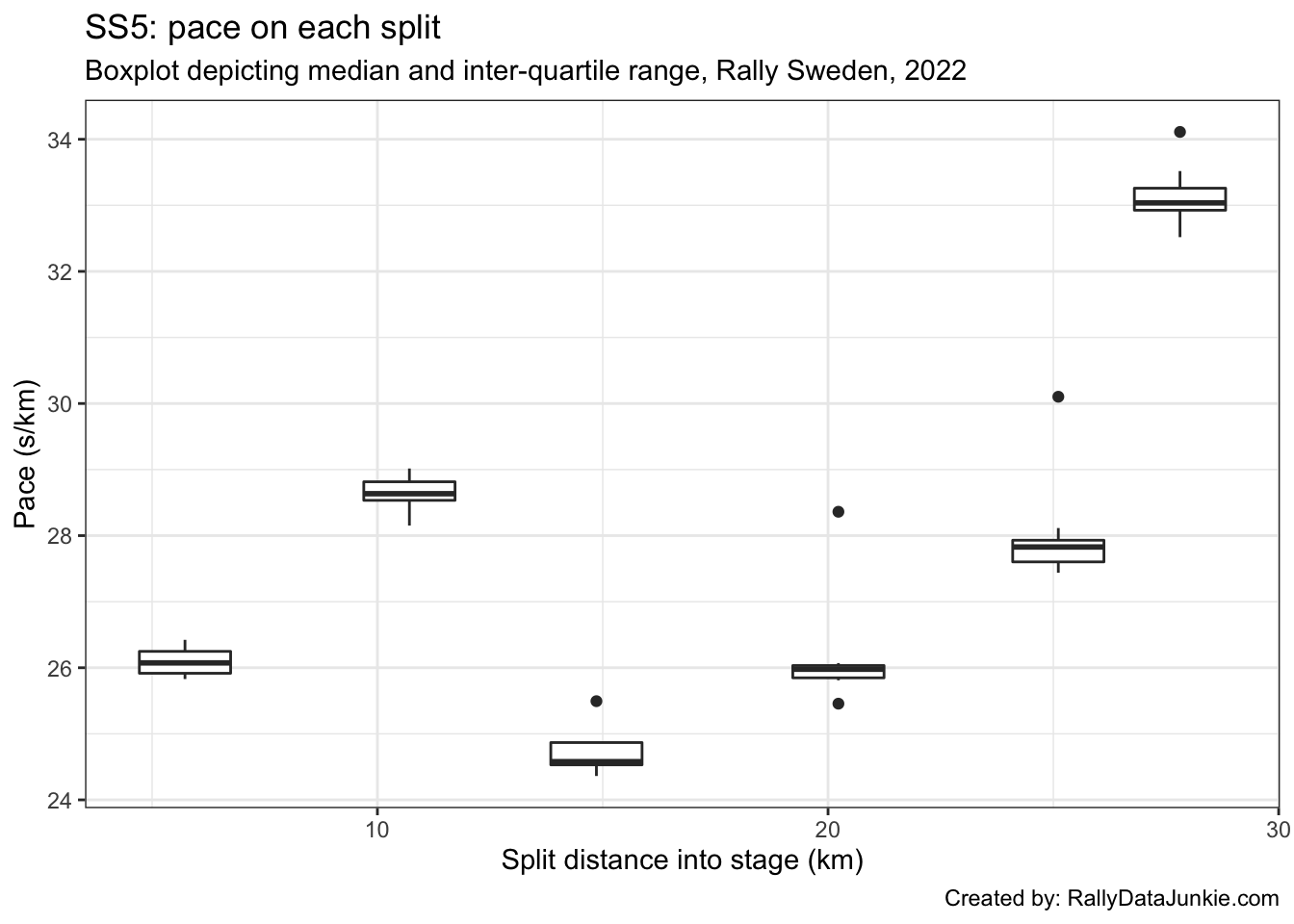- best recorded split time at each split (ultimate actuals): gives an estimate of how well the driver’s split times compare with each first ranked split time (time into stage at each split);