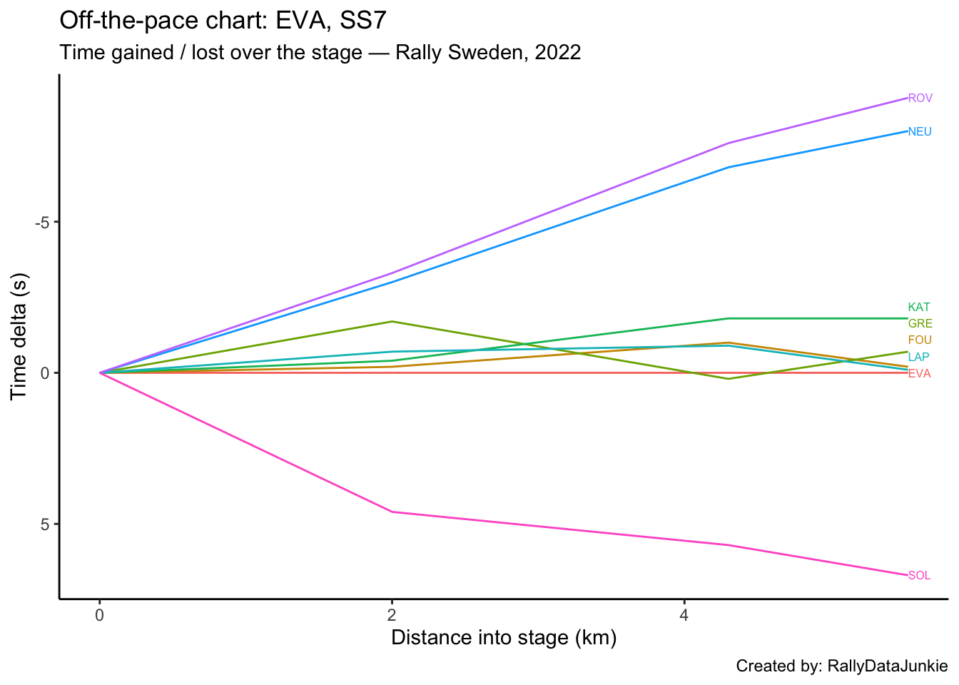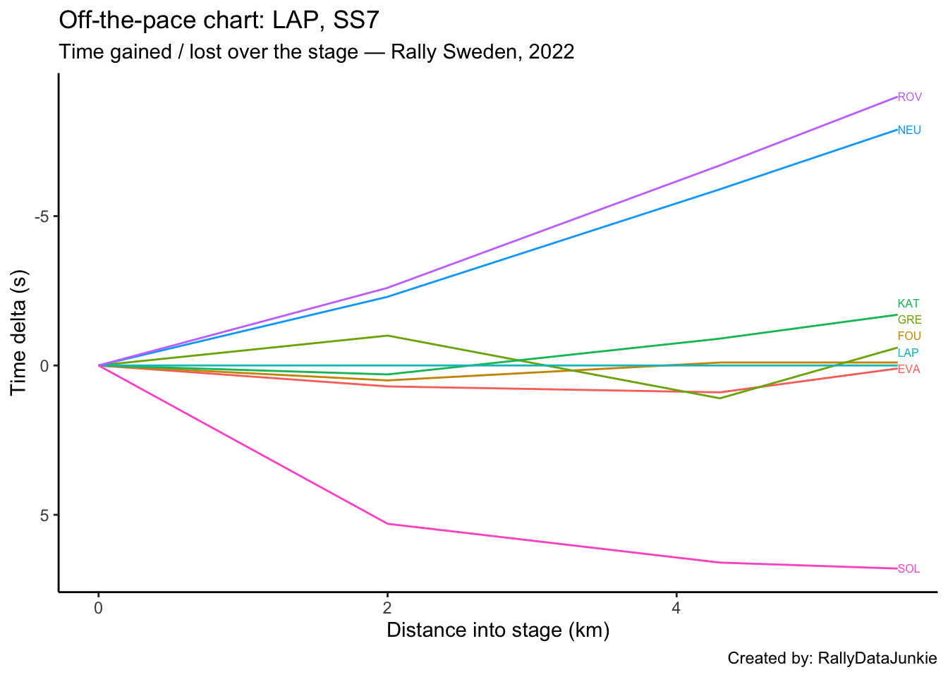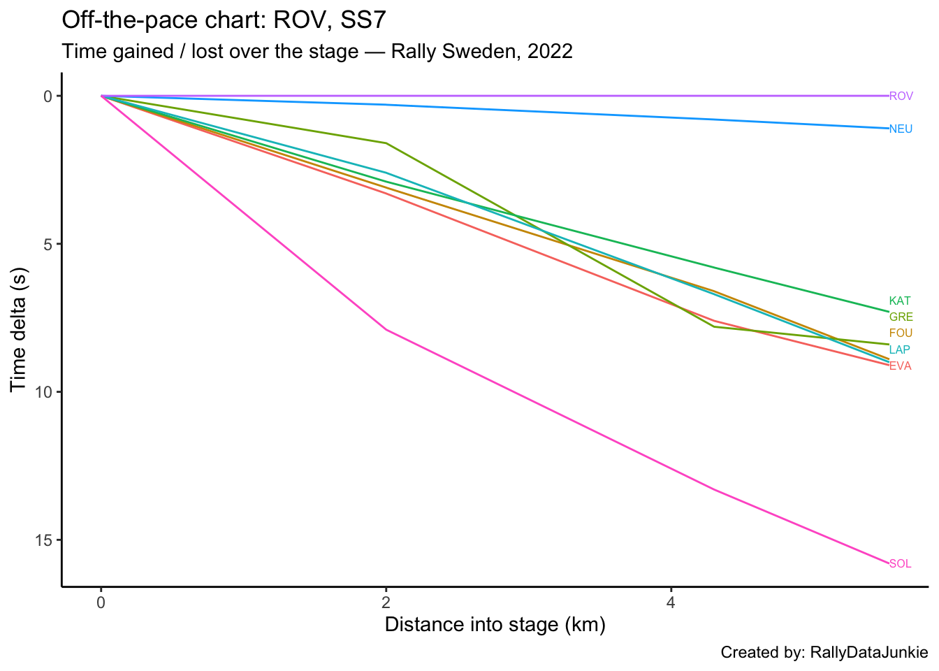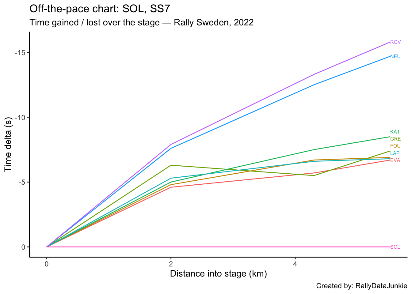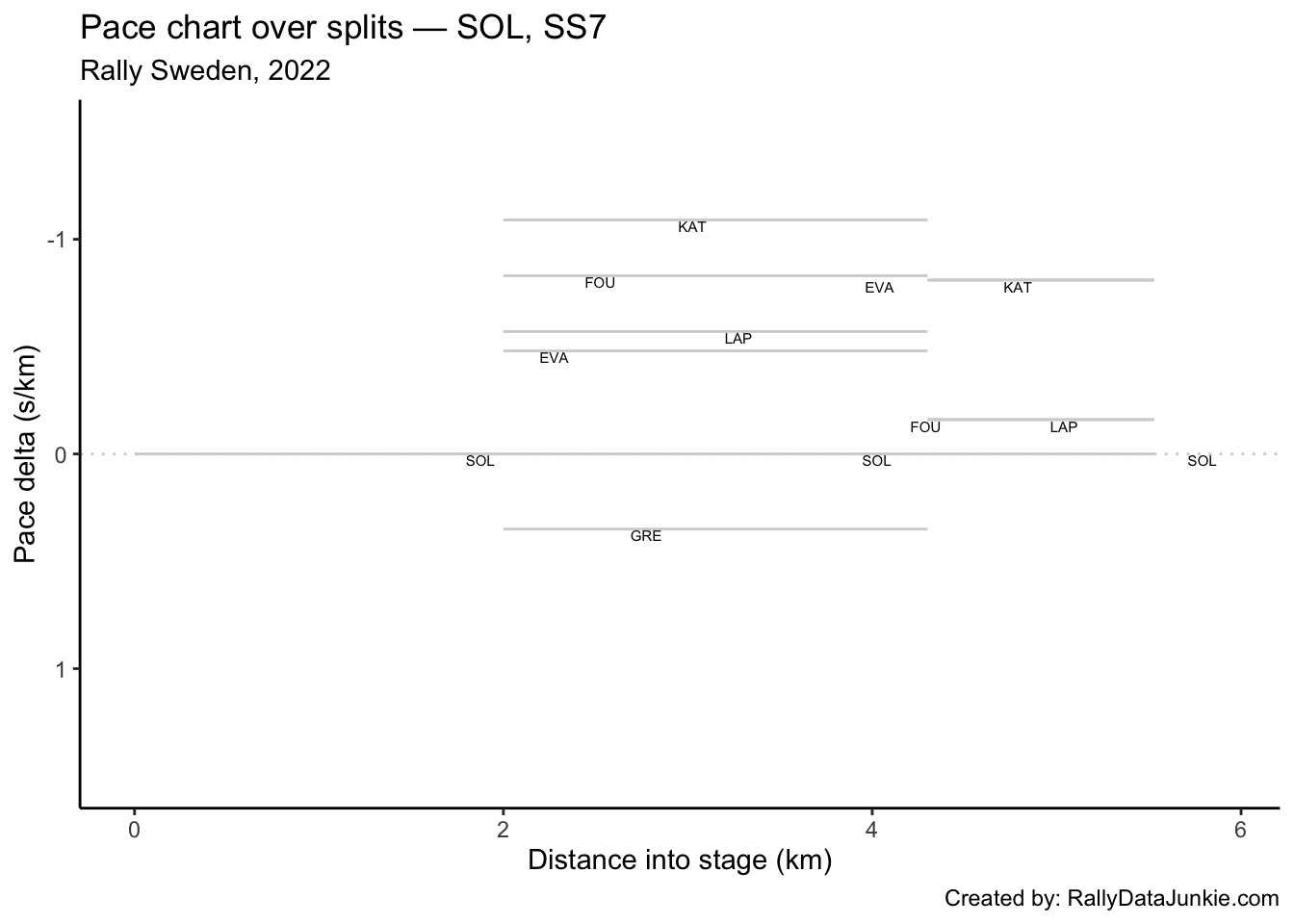 SOL’s delta in time to complete each split section compared to other drivers: