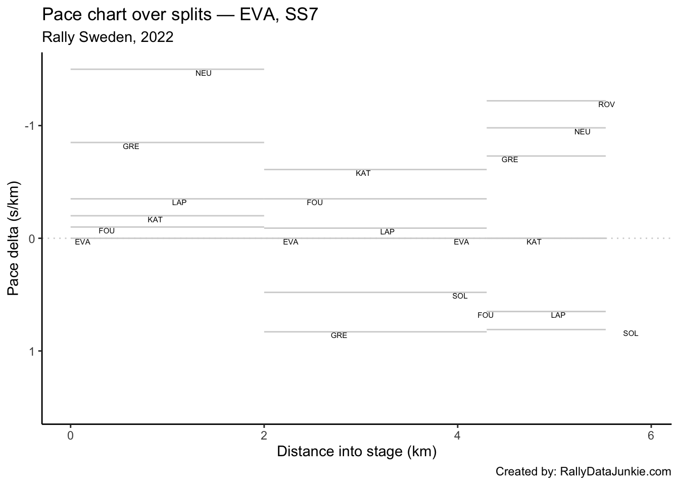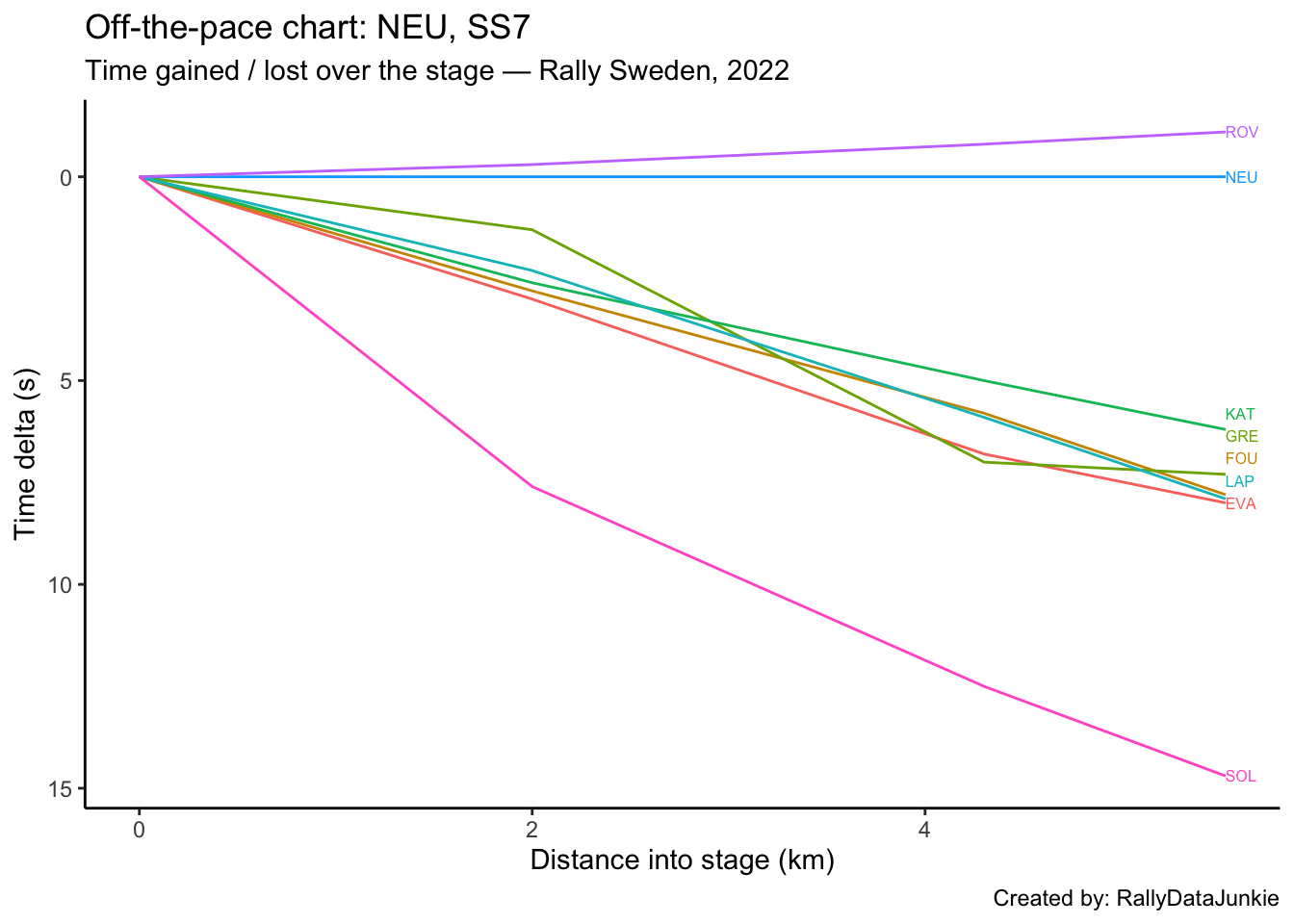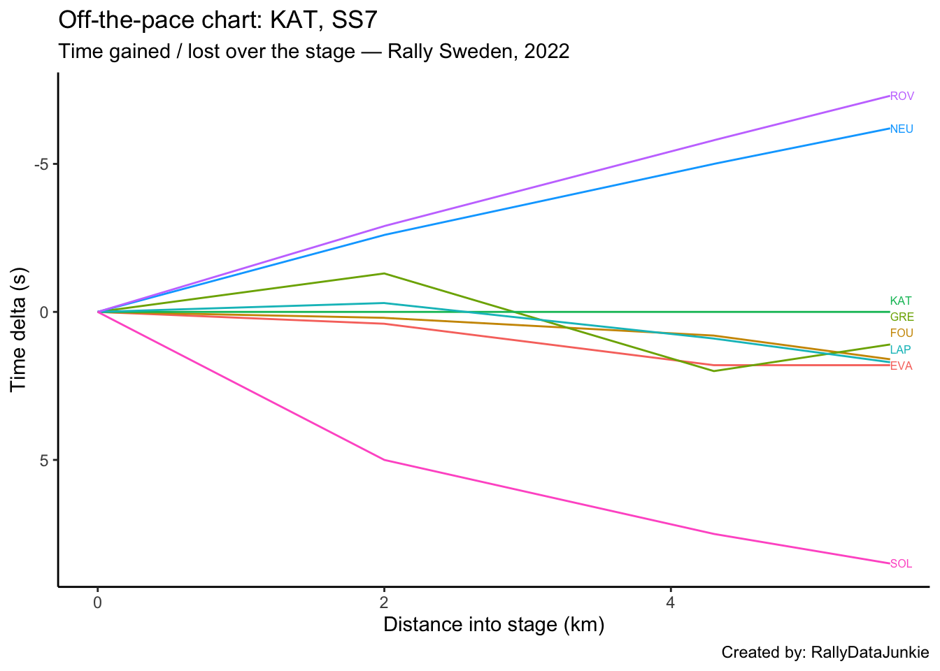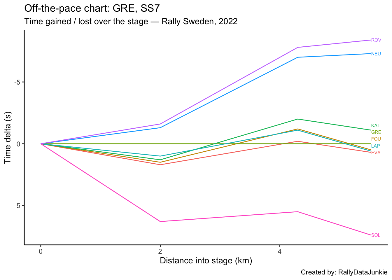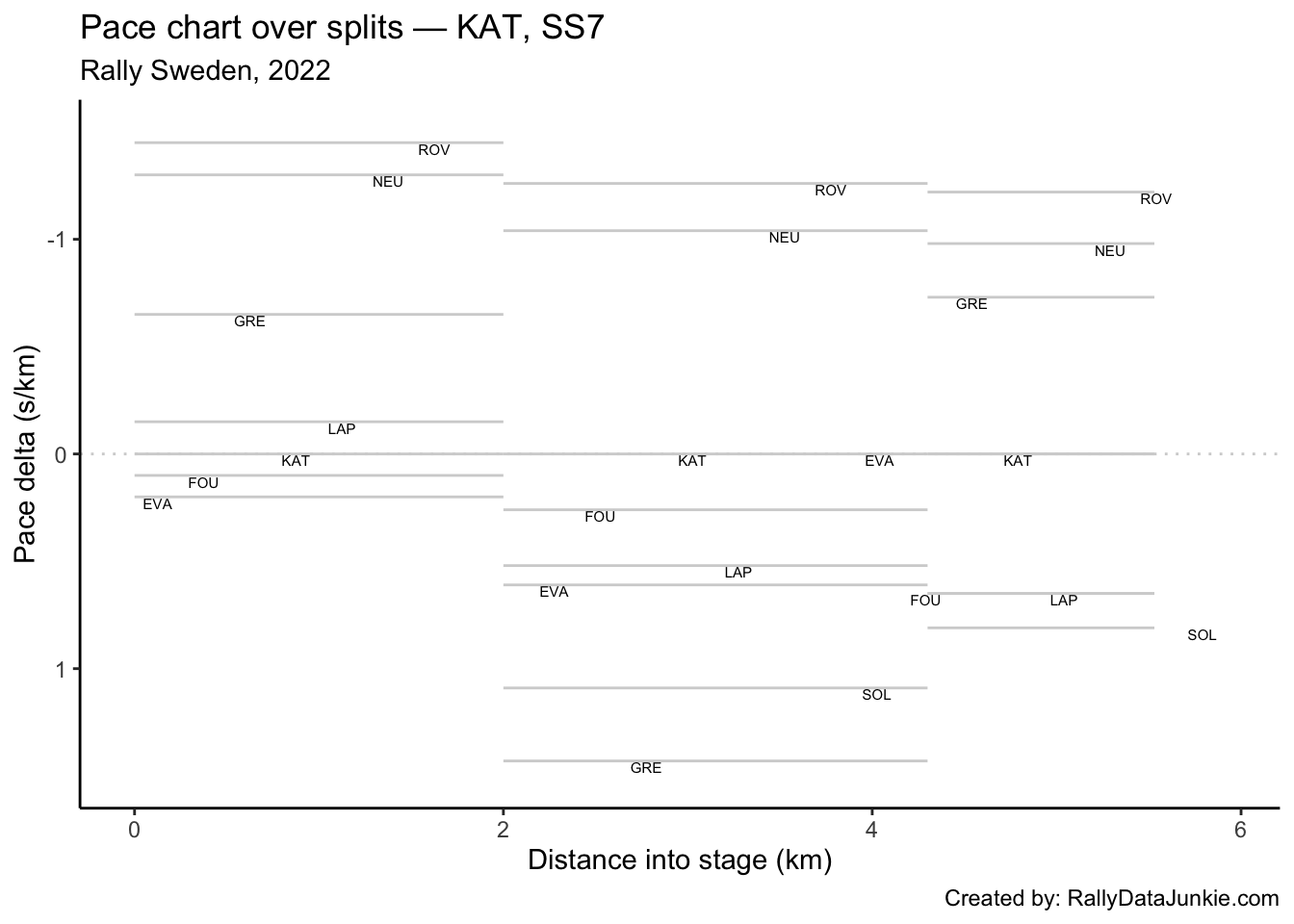 SOL’s delta in time to complete each split section compared to other drivers: