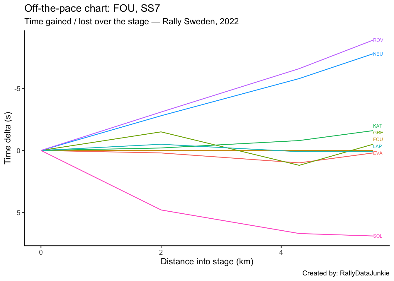 FOU’s delta in time to complete each split section compared to other drivers:
