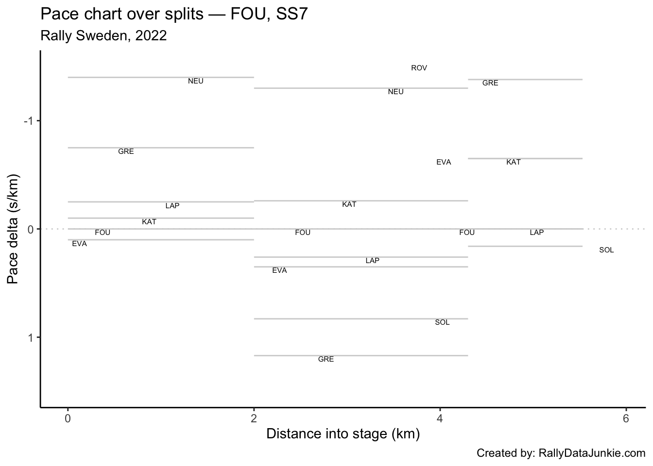 FOU’s delta at each split compared to other drivers.