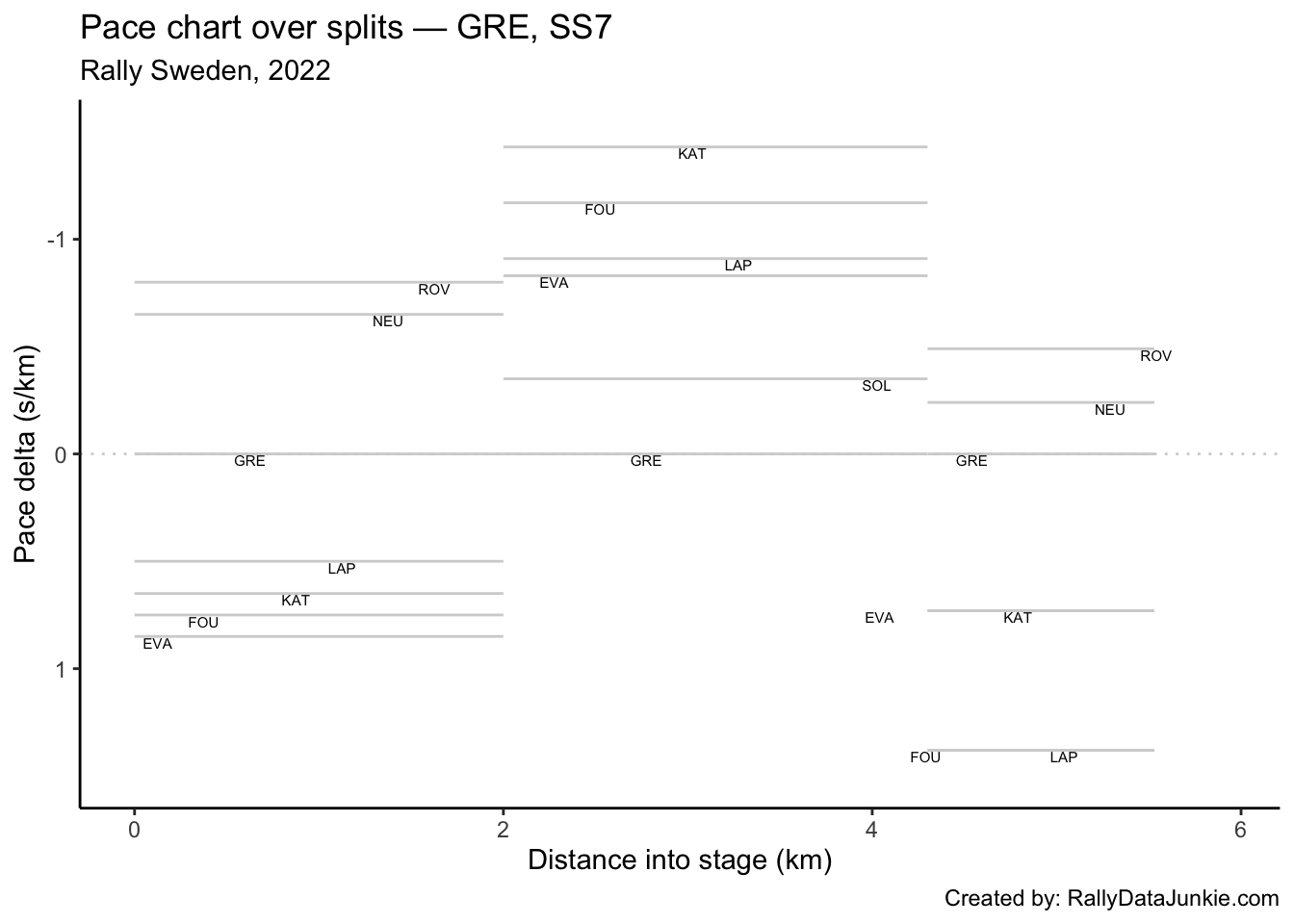 - accumulated ultimate sections times: gives and estimate of how quickly the driver is going relative to the fastest possible completion of the stage based on accumulated ultimate split section times.
