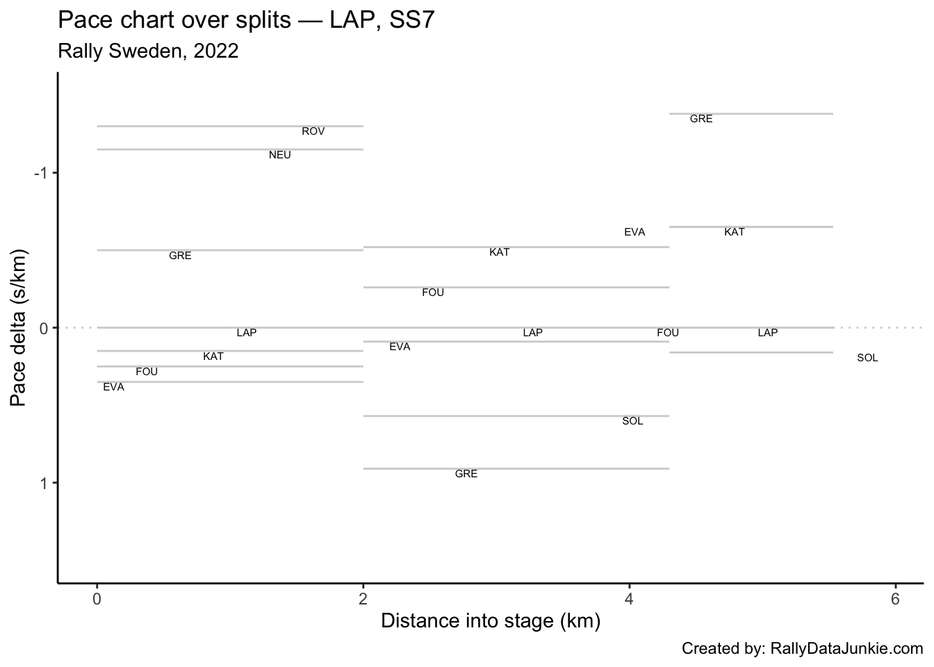 LAP’s delta at each split compared to other drivers.
