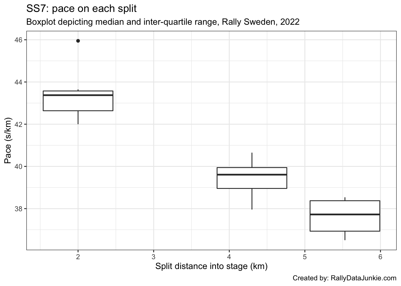 - best recorded split time at each split (ultimate actuals): gives an estimate of how well the driver’s split times compare with each first ranked split time (time into stage at each split);